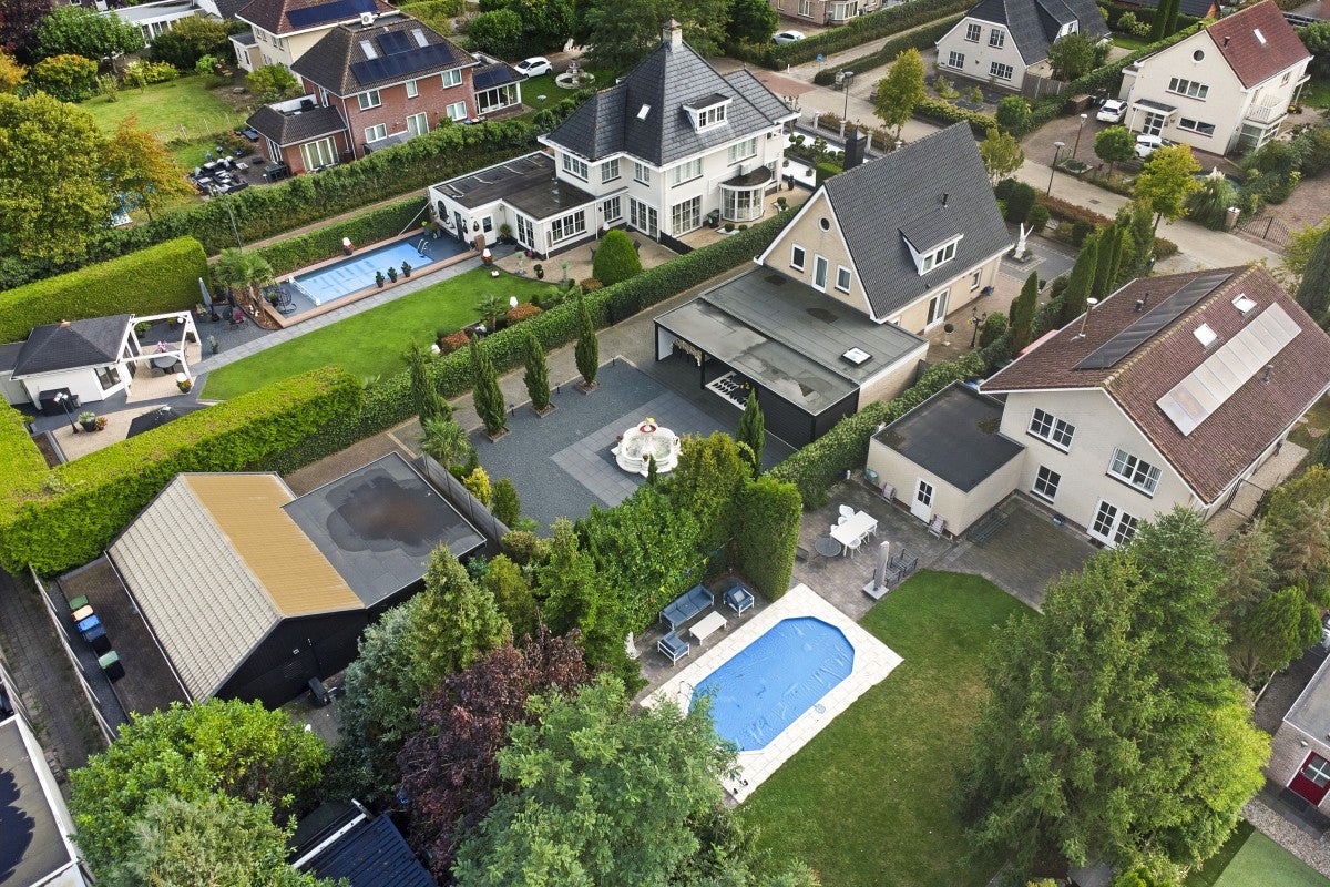In de populaire villawijk De Landerijen ligt deze onder architectuur gebouwde vrijstaande villa op een perceel van 1.079 m². Deze woning biedt privacy met vijf slaapkamers en voldoende parkeerruimte. Achter op het terrein staat een groot bijgebouw van 7 x 10 meter, veelzijdig inzetbaar als garage, werkplaats of sauna.
