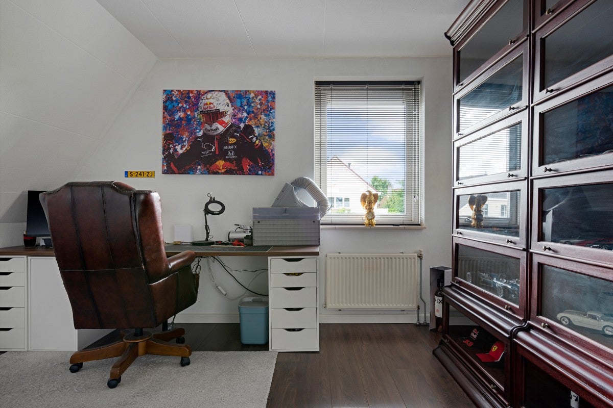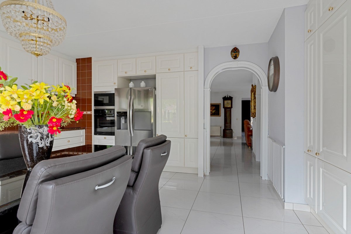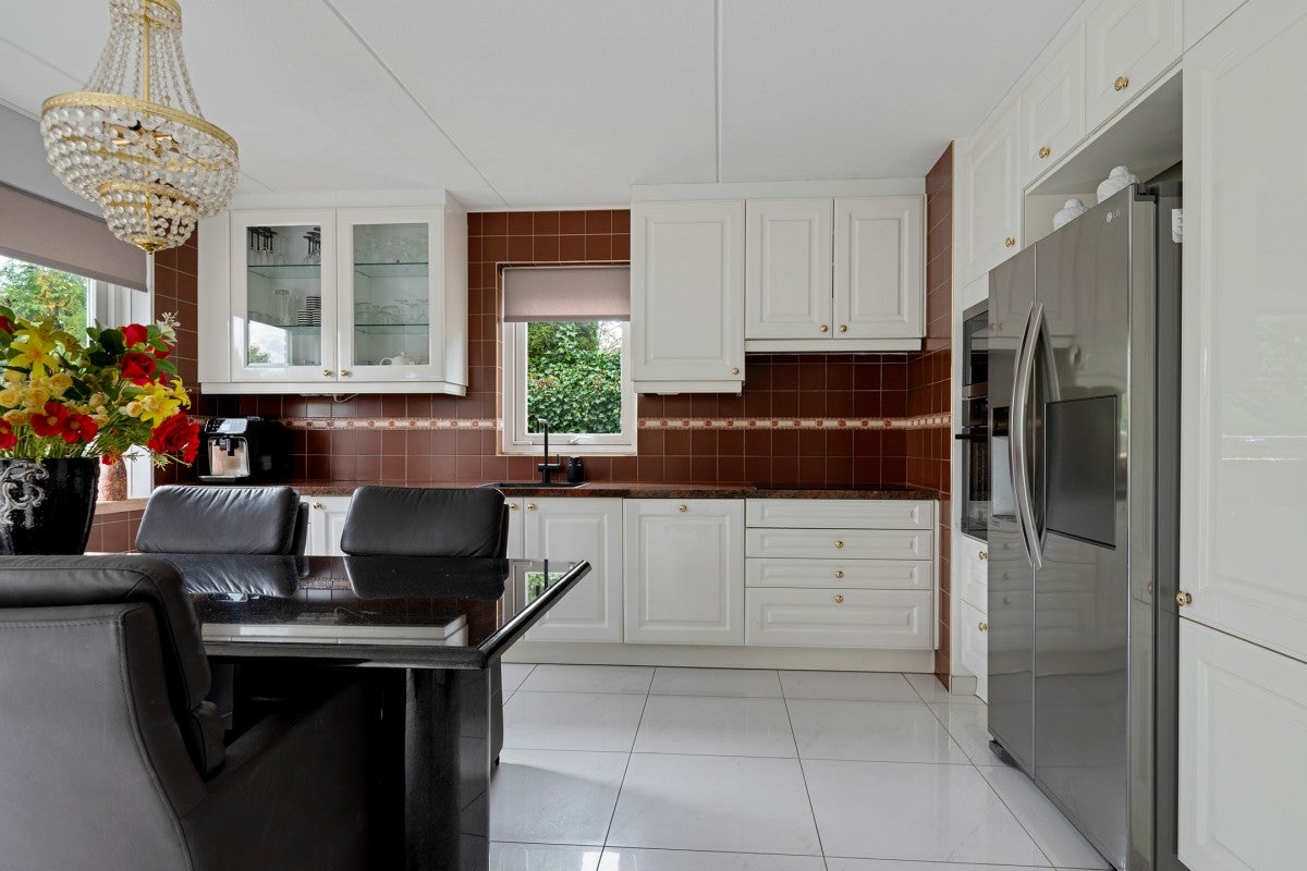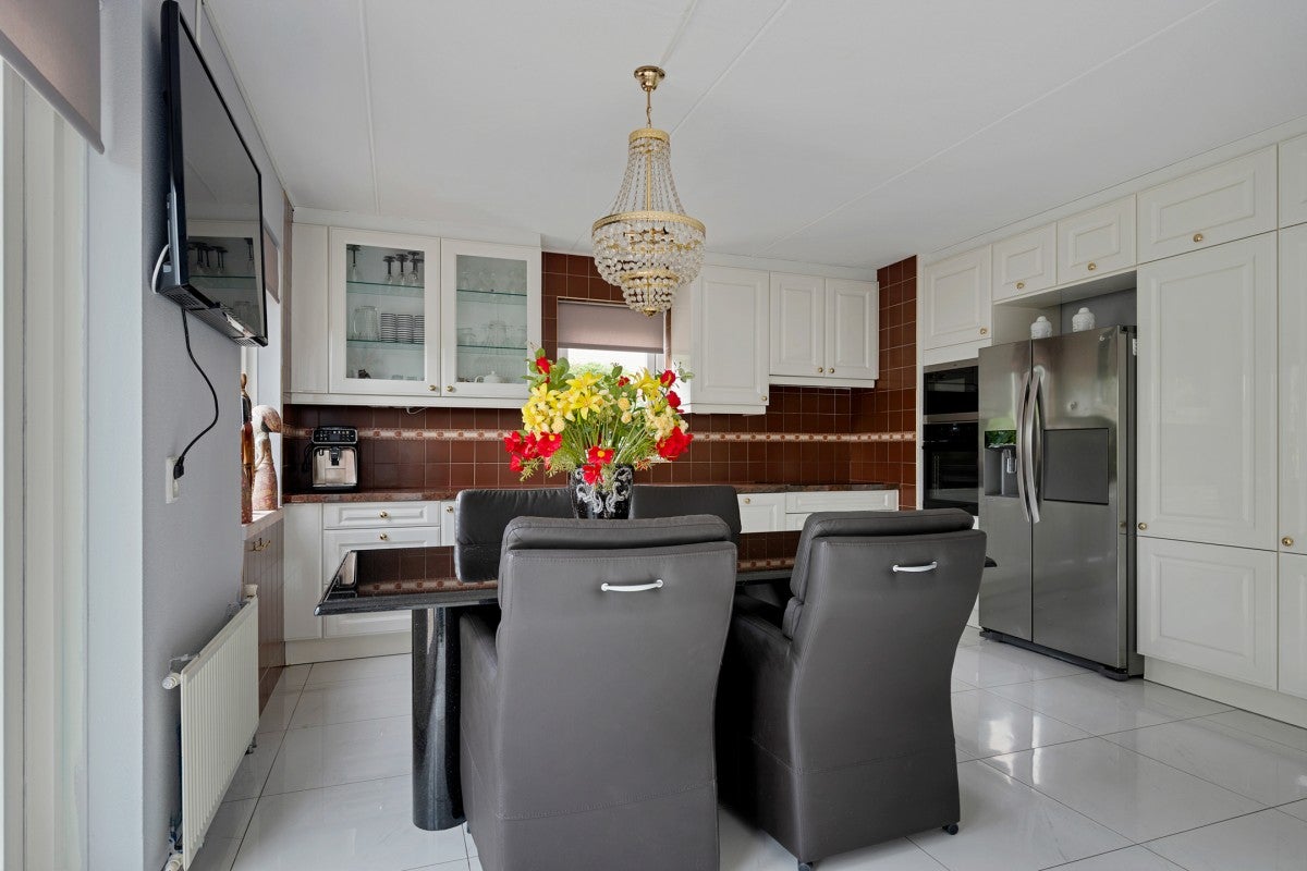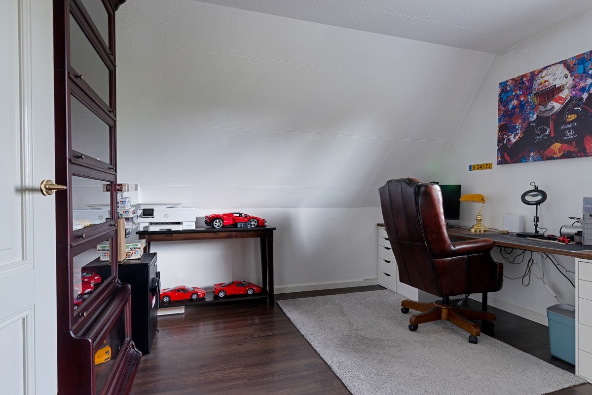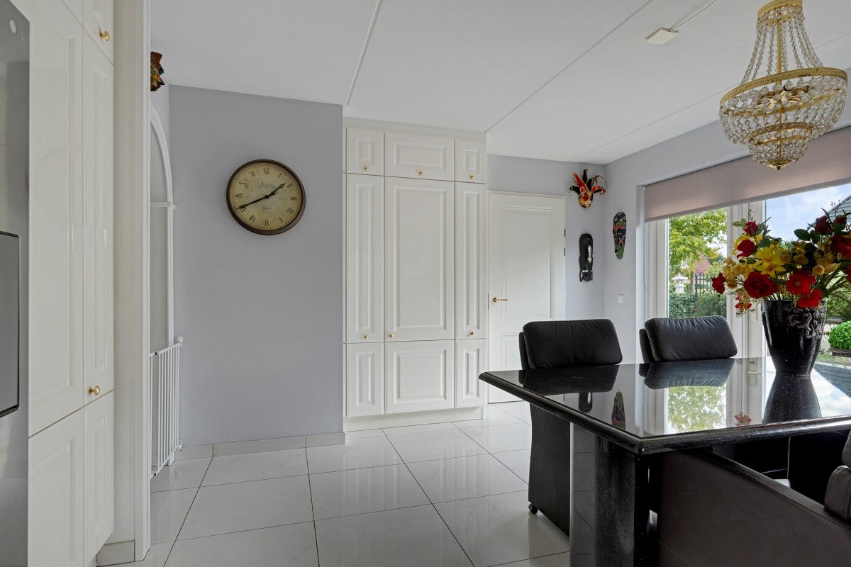 De woning heeft een brede hal met toegang tot de ruime woonkamer, die voorzien is van vloerverwarming en een open haard. De open woonkeuken is van alle gemakken voorzien. Ook is er een extra kamer voor opslag of als speelkamer. De uitbouw zorgt voor veel licht en biedt toegang tot een fijne kantoorruimte.