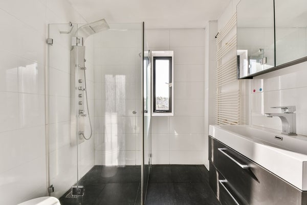 1e verdieping: (v.v. laminaatvloer) - overloop met toegang tot alle ruimtes - slaapkamer 1 gelegen aan de achterzijde van de woning - slaapkamer 2 gelegen aan de achterzijde van de woning - badkamer tot aan het plafond betegeld met o.a. toilet, douchecabine met regendouche, wastafelmeubel, designradiator, raam, toilet - slaapkamer 3 gelegen aan de voorzijde van de woning