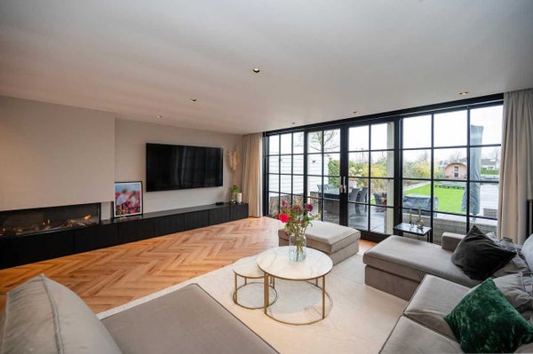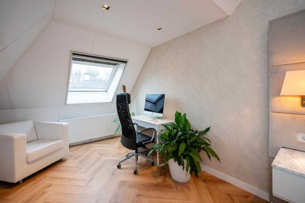 Roderveld 20 in Lelystad is een combinatie van karakter en modern comfort, gelegen in het schilderachtige Villapark Buitenhof. De woning heeft een woonoppervlak van 159 m², 4 slaapkamers, 2 badkamers en een grote leefkeuken, perfect voor luxe en rust. U betreedt de woning via een ruime voortuin met oprit voor 2 auto’s. De grote leefkeuken is uitgerust met hoogwaardige apparatuur, zoals een inductiekookplaat en een Quooker. De gashaard en de 13 zonnepanelen zorgen voor comfort en lage energiekosten. De eerste verdieping herbergt 3 slaapkamers en een luxe badkamer. De zolder is een lichte ruimte met een groot vrijstaand bad en airconditioning. De 30 meter diepe achtertuin, grenzend aan de golfbaan, biedt voldoende ruimte om te ontspannen en genieten. Een garage/berging met keukenblok maakt het geheel compleet.