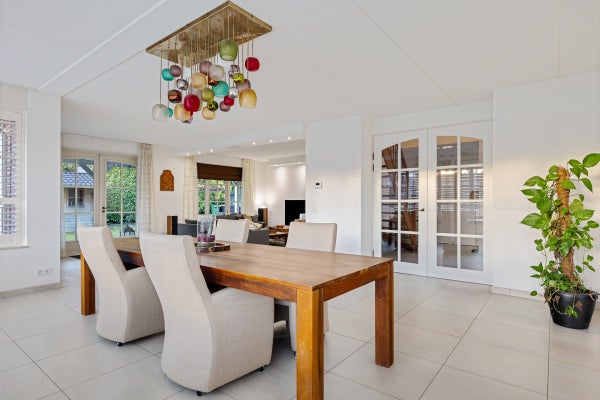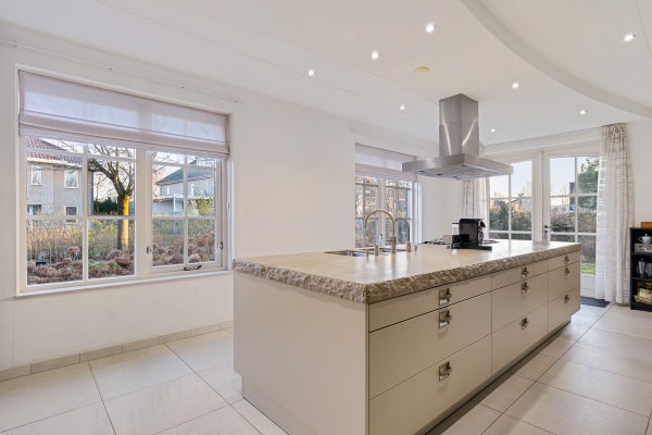 Op Marquette 85 in Lelystad staat een vrijstaande villa, gelegen op een kavel van 812 m² in de rustige woonwijk de Landerijen. Deze woning van 218 m² is energiezuinig, met 28 zonnepanelen en energielabel A, en biedt zowel comfort als levensloopbestendigheid. Bij binnenkomst wordt u verwelkomd door een ruime hal met veel lichtinval. De woonkamer beschikt over dubbele openslaande deuren naar de tuin en een sfeervolle zij-uitbouw. De halfopen keuken is voorzien van moderne inbouwapparatuur. Op de begane grond vindt u een slaapkamer met en-suite badkamer. De verdieping heeft vier slaapkamers, een wasruimte, en een complete badkamer. Een bergzolder biedt extra opbergruimte. De tuin heeft een houten overkapping en een kweekkas voor een groene oase.