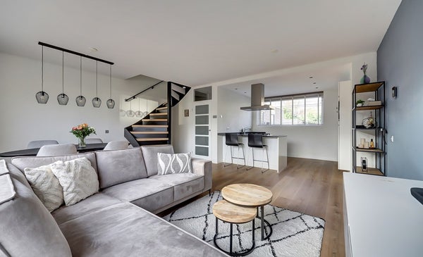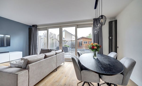 Bij binnenkomst valt direct de ruime, tuingerichte woonkamer op. Dankzij de grote raampartijen geniet je hier van een prettige lichtinval en een open, ruimtelijk gevoel. De directe verbinding met de achtertuin zorgt voor een fijne leefruimte waarin binnen en buiten naadloos in elkaar overlopen.