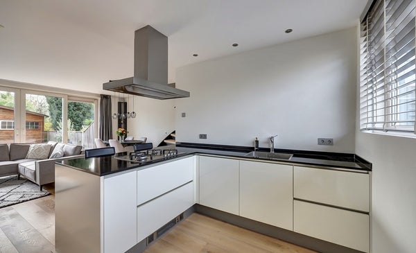 De luxe inbouwkeuken vormt het hart van de woning. Deze moderne en sfeervolle keuken is uitgevoerd met een stijlvol kookeiland, hoogwaardige inbouwapparatuur en biedt volop werk- en opbergruimte. Een ideale plek voor kookliefhebbers en gezellige momenten met familie en vrienden.