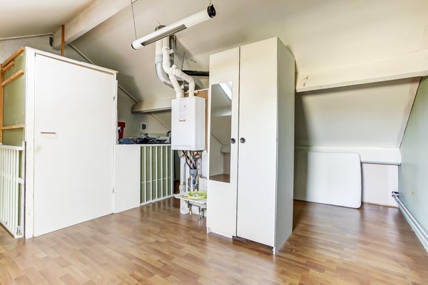 Bij binnenkomst in de woonkamer, ervaart u direct de ruimte en lichtinval die deze woning te bieden heeft. De royale indeling biedt tal van mogelijkheden om het naar uw eigen stijl en wensen in te richten. Door de indeling en de garage is deze woning geschikt voor een badkamer en slaapkamer op de begane grond. De woonkamer biedt de nodige ruimte en geeft toegang tot de intieme tuin. De open keuken is voorzien van de nodige inbouwapparatuur. De woning heeft in totaal 3 kamers, waaronder 2 zeer ruime slaapkamers op de eerste verdieping, op de tweede verdieping vindt u een ruime zolderverdieping, welke altijd als slaapkamer in gebruik is geweest.