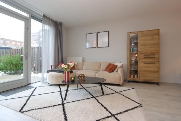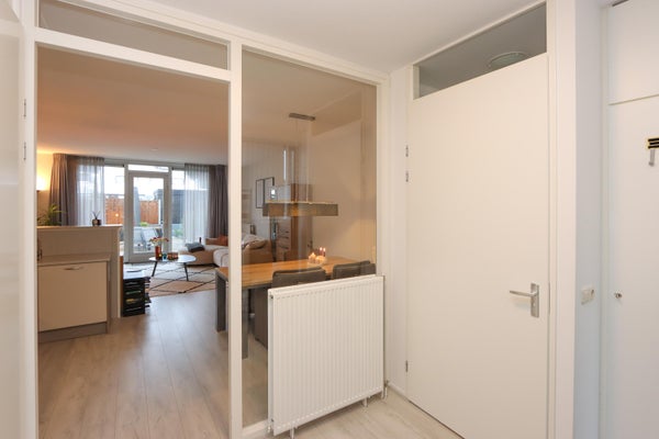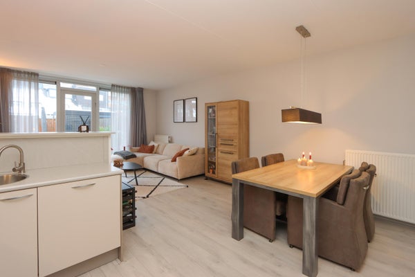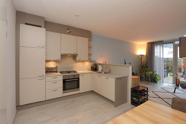 De indeling omvat een hal met toilet, een halfopen keuken met diverse inbouwapparatuur, en een tuingerichte woonkamer met toegang tot het terras. Op de eerste verdieping vind je twee slaapkamers en een badkamer. De tweede verdieping biedt ruimte voor een derde slaapkamer en de cv-ketel. Met eigen parkeergelegenheid en op loopafstand van het winkelcentrum en treinstation, is dit huis perfect für jou.