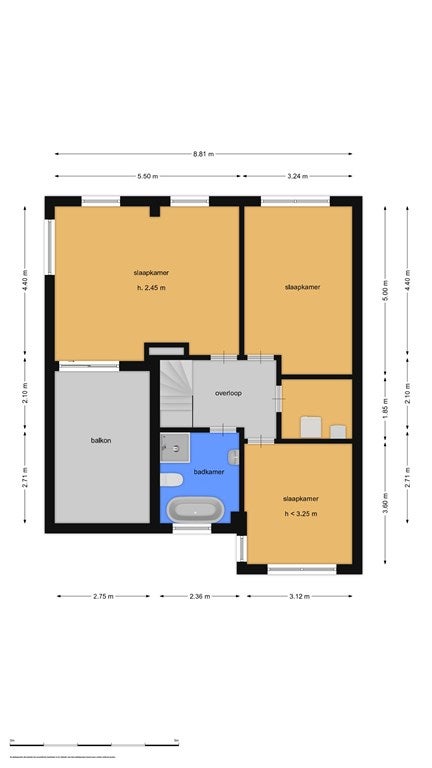 - Aanwezig (81 m², gelegen op het noordwesten)