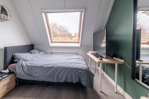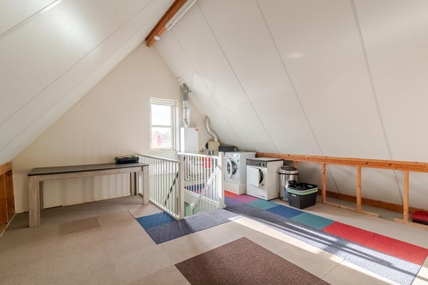 Hier bevindt zich een ruime geïsoleerde zolderruimte, in gebruik als berging, met wasmachineaansluiting, C.V.-ketel en de unit voor de mechanische ventilatie. Hier is eenvoudig een extra slaapkamer te realiseren.