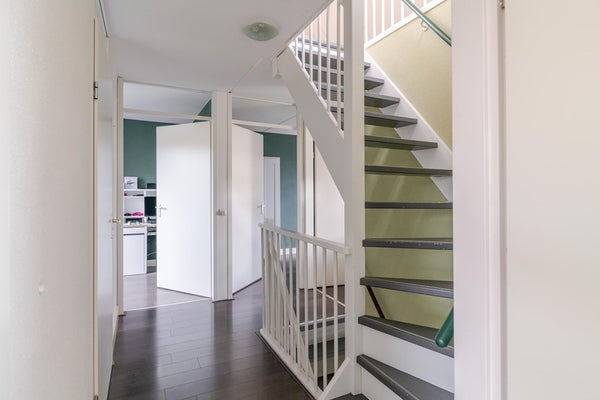 Een entree met hal, toilet, meterkast, toegang tot de woonkamer en trapopgang naar de eerste verdieping.