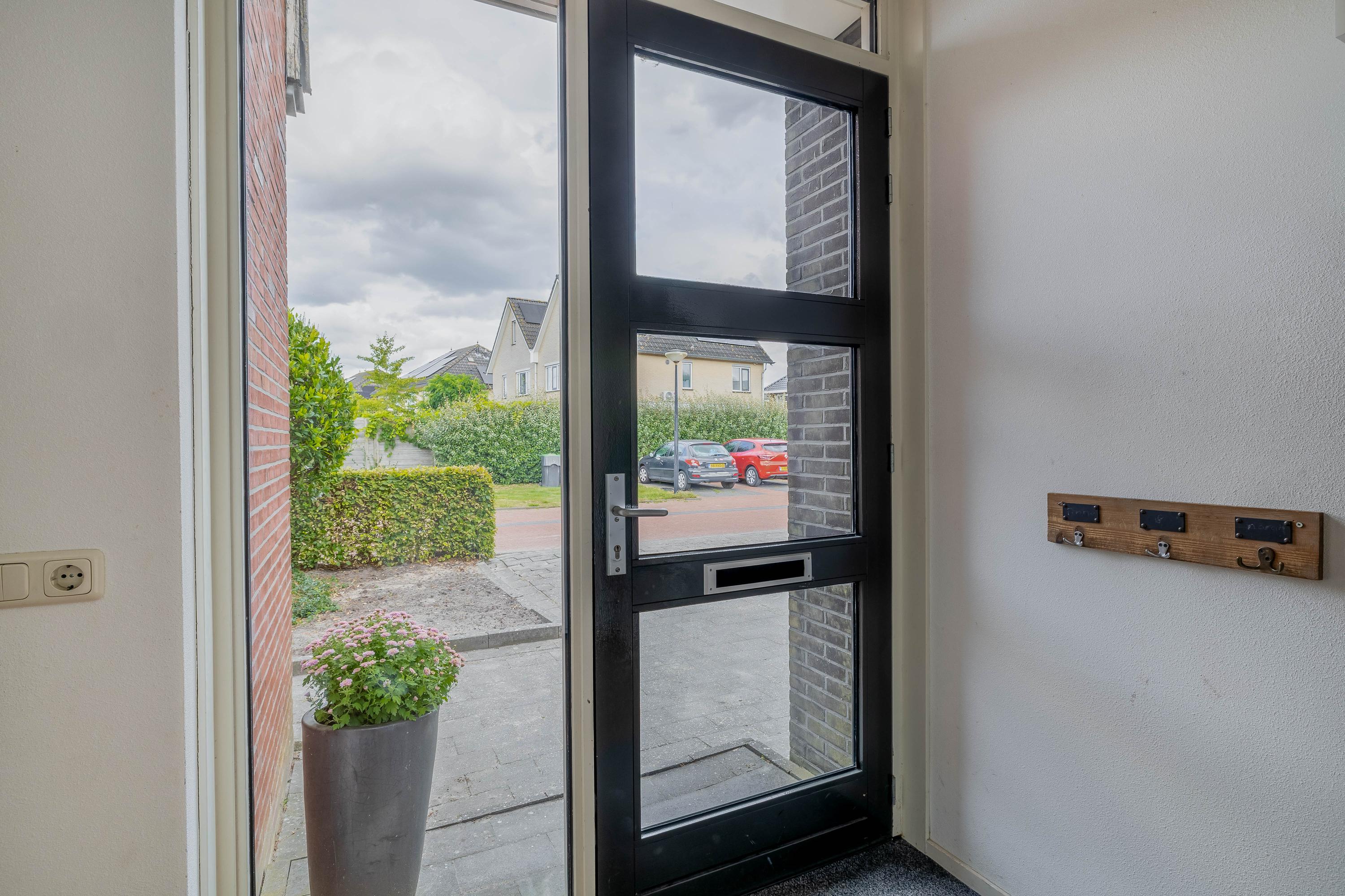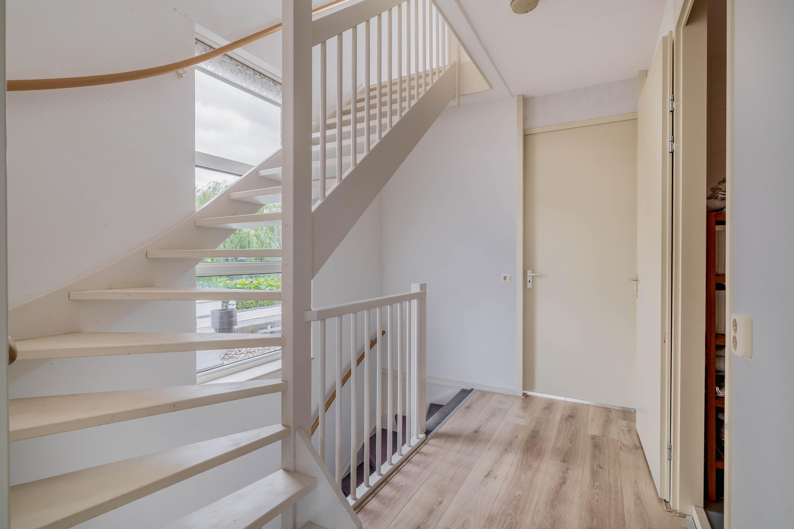 De indeling op de begane grond omvat een entree met toiletruimte, een praktische bijkeuken, en een ruime garage. De open keuken vormt een geheel met de lichte woonkamer, die via openslaande deuren toegang biedt tot de tuin. Op de eerste verdieping heeft u twee ruime slaapkamers en een badkamer. De tweede verdieping biedt een derde slaapkamer en een balkon.