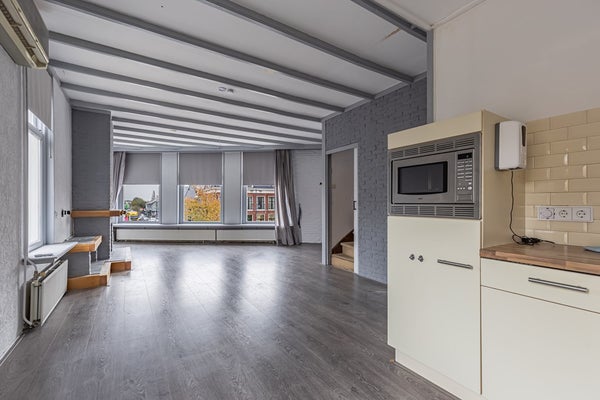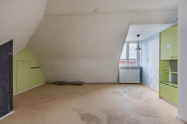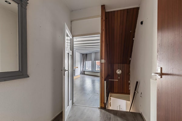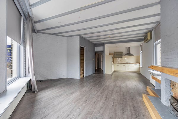 Via een eigen entree aan de buitenzijde bereik je de woning op de bovenverdiepingen. Deze is gedateerd, maar juist dat maakt het de ideale basis om helemaal naar eigen smaak te moderniseren. De woning beschikt over een ruime woonkamer, een badkamer, een apart toilet en twee slaapkamers op de eerste verdieping. Vanuit hier stap je zo het dakterras op, waar je in alle rust van de buitenlucht kunt genieten, midden in het centrum. Op de tweede verdieping bevindt zich nog een derde, ruime slaapkamer met extra bergruimte onder de schuine wanden.