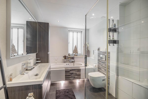 In de jonge groene woonwijk Tramdijk Oost in Lemmer ligt deze energieneutrale halfvrijstaande woning. Gebouwd in 2016, biedt het huis een ruime L-woonkamer met een nieuwe PVC-vloer en vloerverwarming. De moderne open keuken is uitgerust met hoogwaardige inbouwapparatuur en verbonden met een volledig geïsoleerde bijkeuken. Op de eerste verdieping zijn drie grote slaapkamers en een luxe badkamer met whirlpool en dubbele wastafel. De zolder heeft veel bergruimte en potentieel voor extra slaapkamers. De verzorgde tuin heeft een zonneterras en de vrijstaande stenen garage met zolder zorgt voor extra bergruimte. Met 288 m² eigen grond en twee parkeerplaatsen op eigen terrein biedt deze woning veel ruimte en comfort.