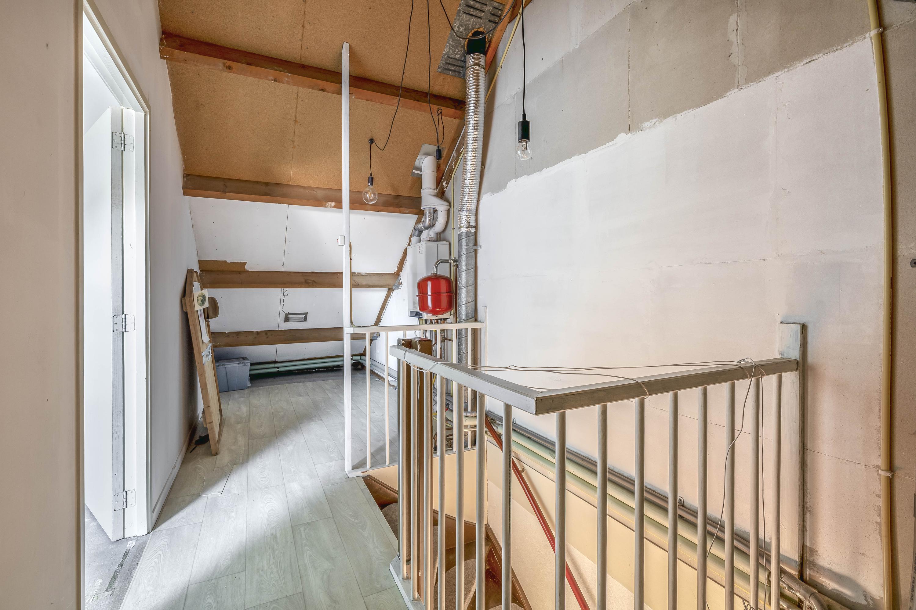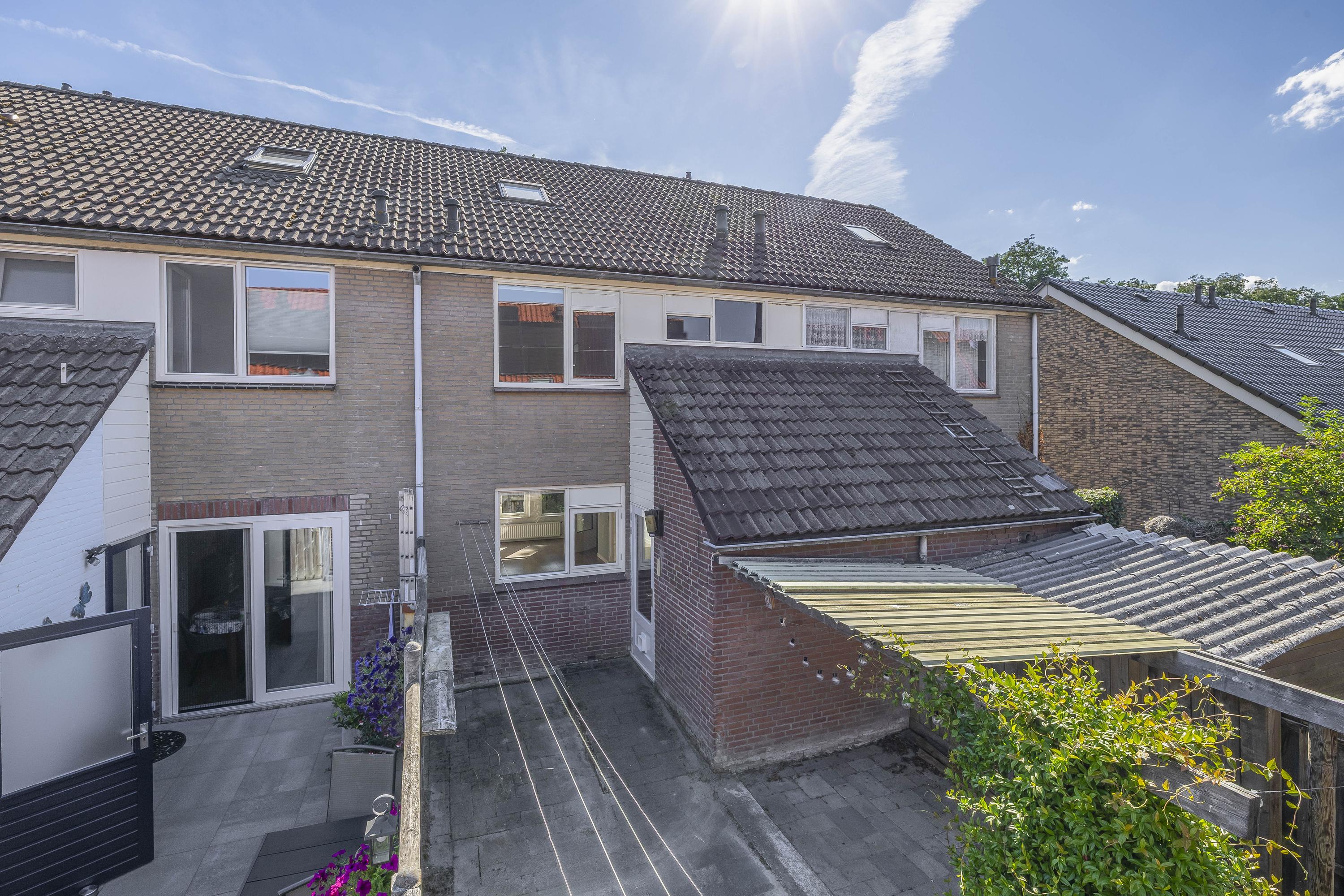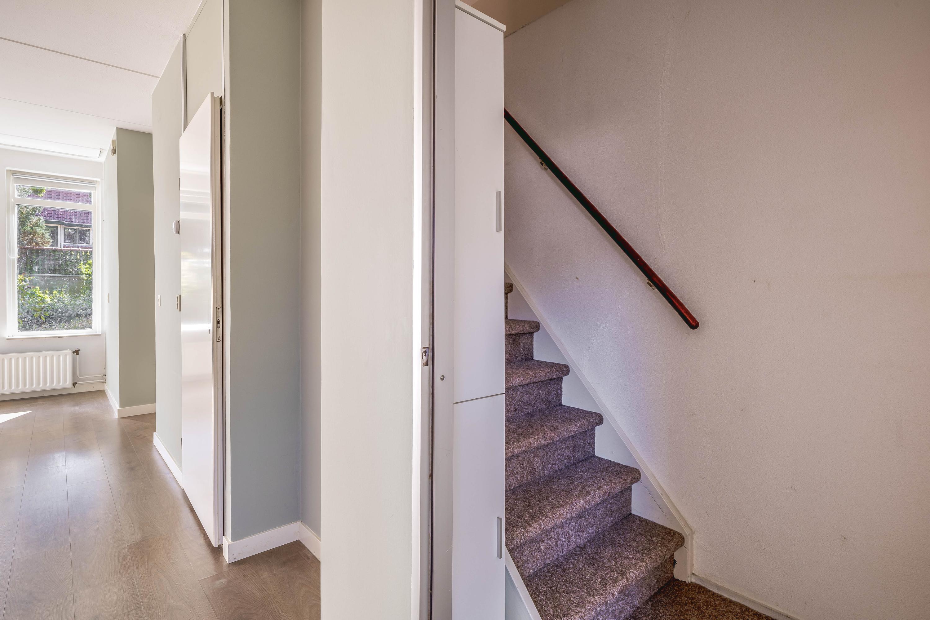 De indeling biedt op de begane grond een entree met toiletruimte, de woonkamer en de bijkeuken met aansluitingen voor wasapparatuur. Op de eerste verdieping zijn drie royale slaapkamers en de badkamer met ligbad en douche. De zolder heeft een vierde slaapkamer en de C.V.-installatie.