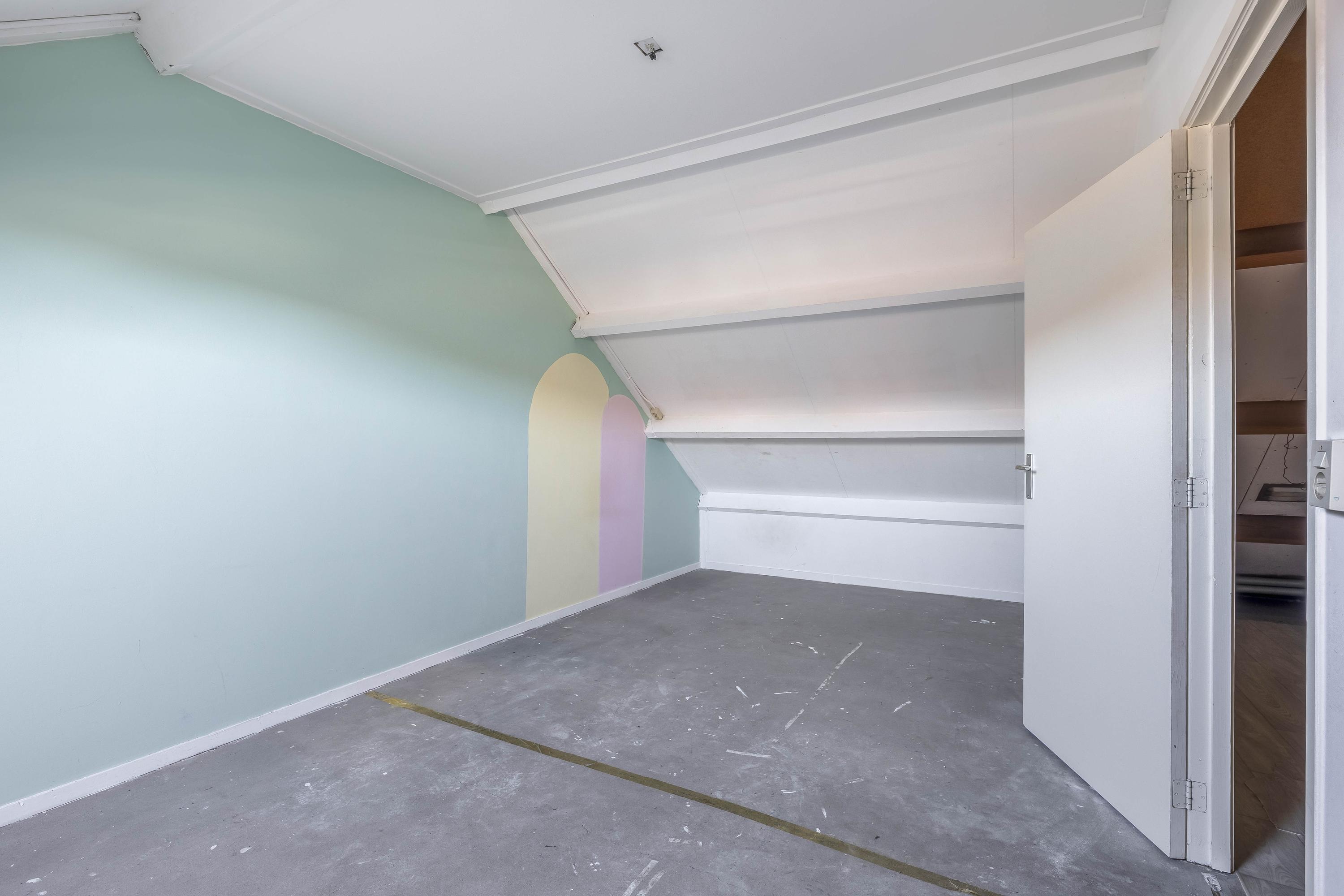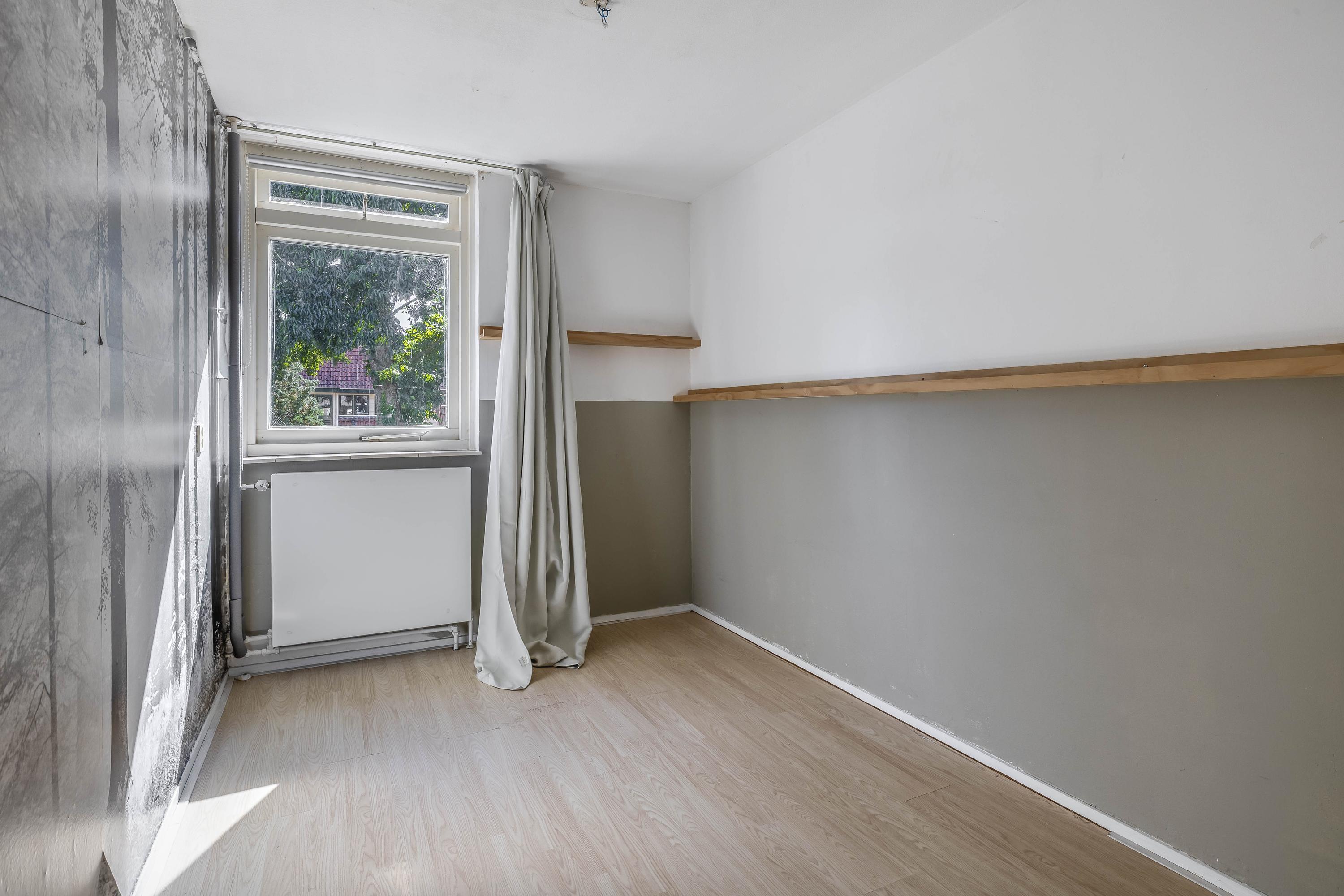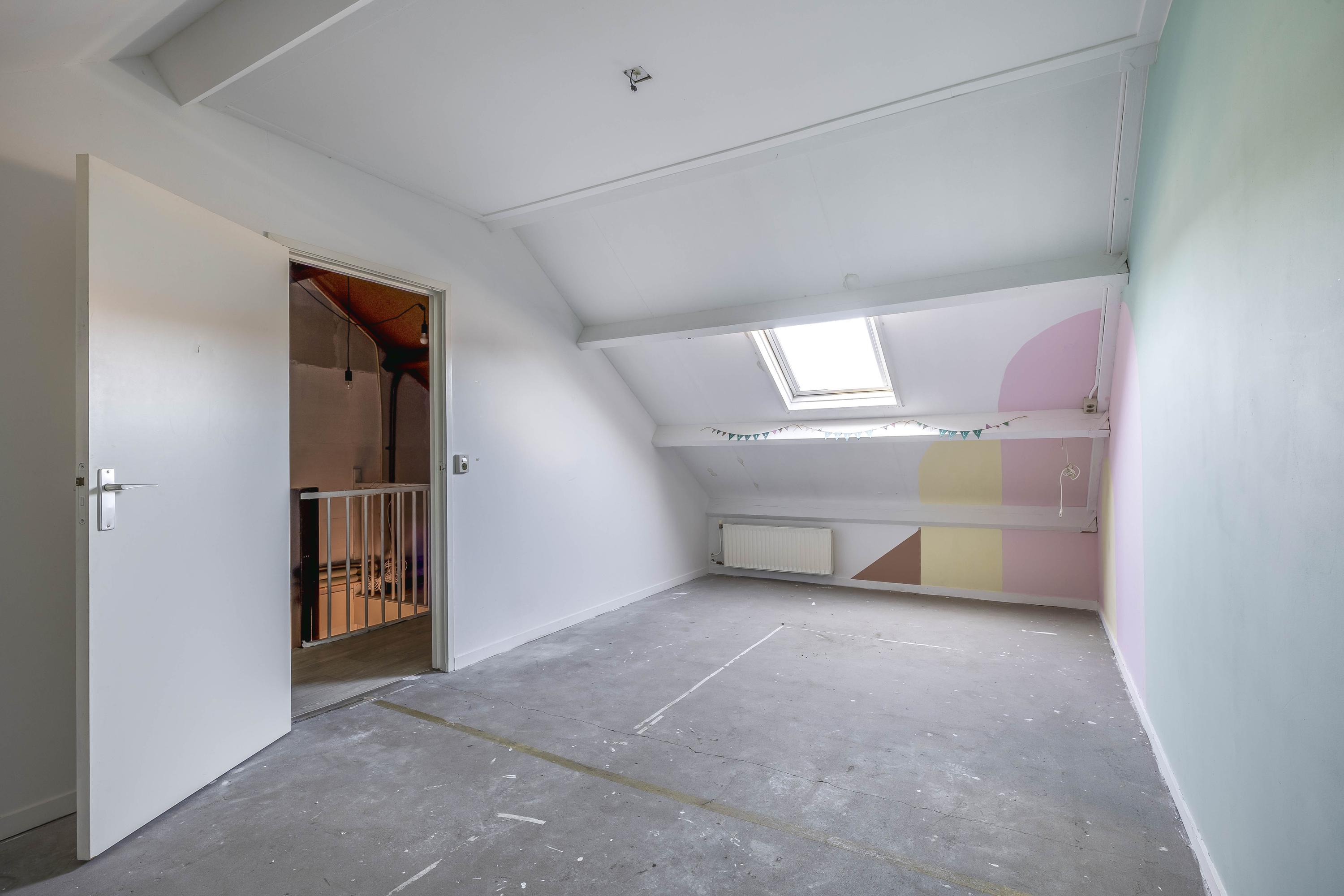 De indeling biedt op de begane grond een entree met toiletruimte, de woonkamer en de bijkeuken met aansluitingen voor wasapparatuur. Op de eerste verdieping zijn drie royale slaapkamers en de badkamer met ligbad en douche. De zolder heeft een vierde slaapkamer en de C.V.-installatie.