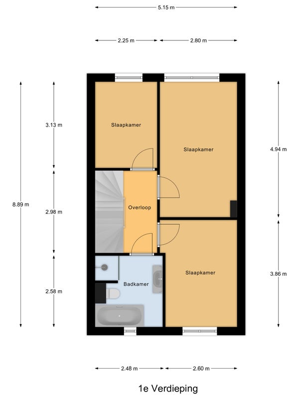 - De tussenwoning heeft een woonoppervlakte van 150 m² en beschikt over 6 kamers, waarvan 5 slaapkamers;