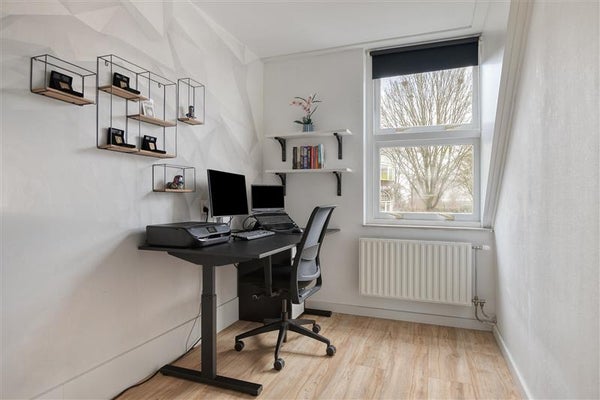 De eerste verdieping is voorzien van drie ruime en praktisch in te delen slaapkamers. De kamers voelen licht en bieden talloze mogelijkheden, zoals een kinderkamer, werkkamer of inloopkast. De vaste trap leidt naar de zolderverdieping, waar een vierde slaapkamer is gecreëerd. Dankzij het goede formaat is ook deze kamer multifunctioneel en biedt daarnaast extra opbergruimte.