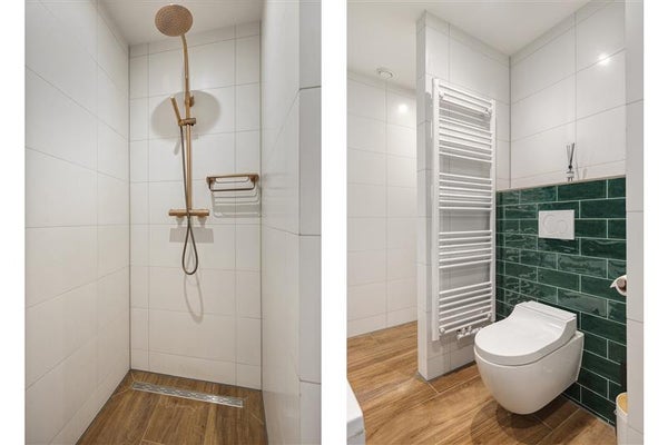De moderne badkamer, ook vernieuwd in 2020, is stijlvol en praktisch ingericht. Hier kun je kiezen om je op te frissen onder de douche of te ontspannen in het extra grote ligbad. Ideaal dat hier ook een toilet aanwezig is. De badkamer is perfect voor het hele gezin en biedt voldoende comfort.
