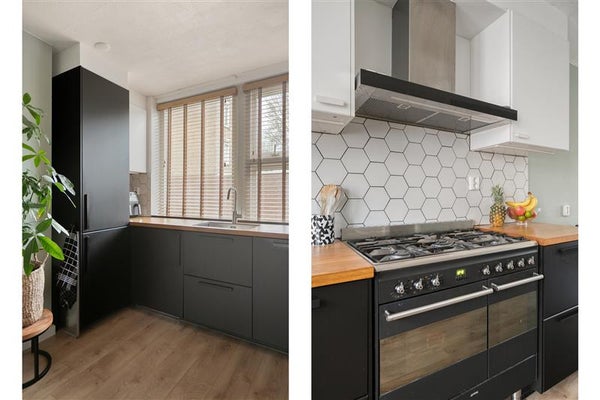 De open keuken, gelegen aan de voorzijde van de woning, is in 2020 volledig vernieuwd. Het is een moderne en goed uitgeruste keuken met een hoogwaardig SMEG 5-pits gasfornuis met 2 ovens, een vaatwasser, koel-/vriescombinatie en afzuigkap. Naast functionaliteit is de keuken ook een stijlvolle blikvanger. Met voldoende werkruimte is koken hier een plezier, of je nu een snelle maaltijd in elkaar draait of een uitgebreid diner bereidt.