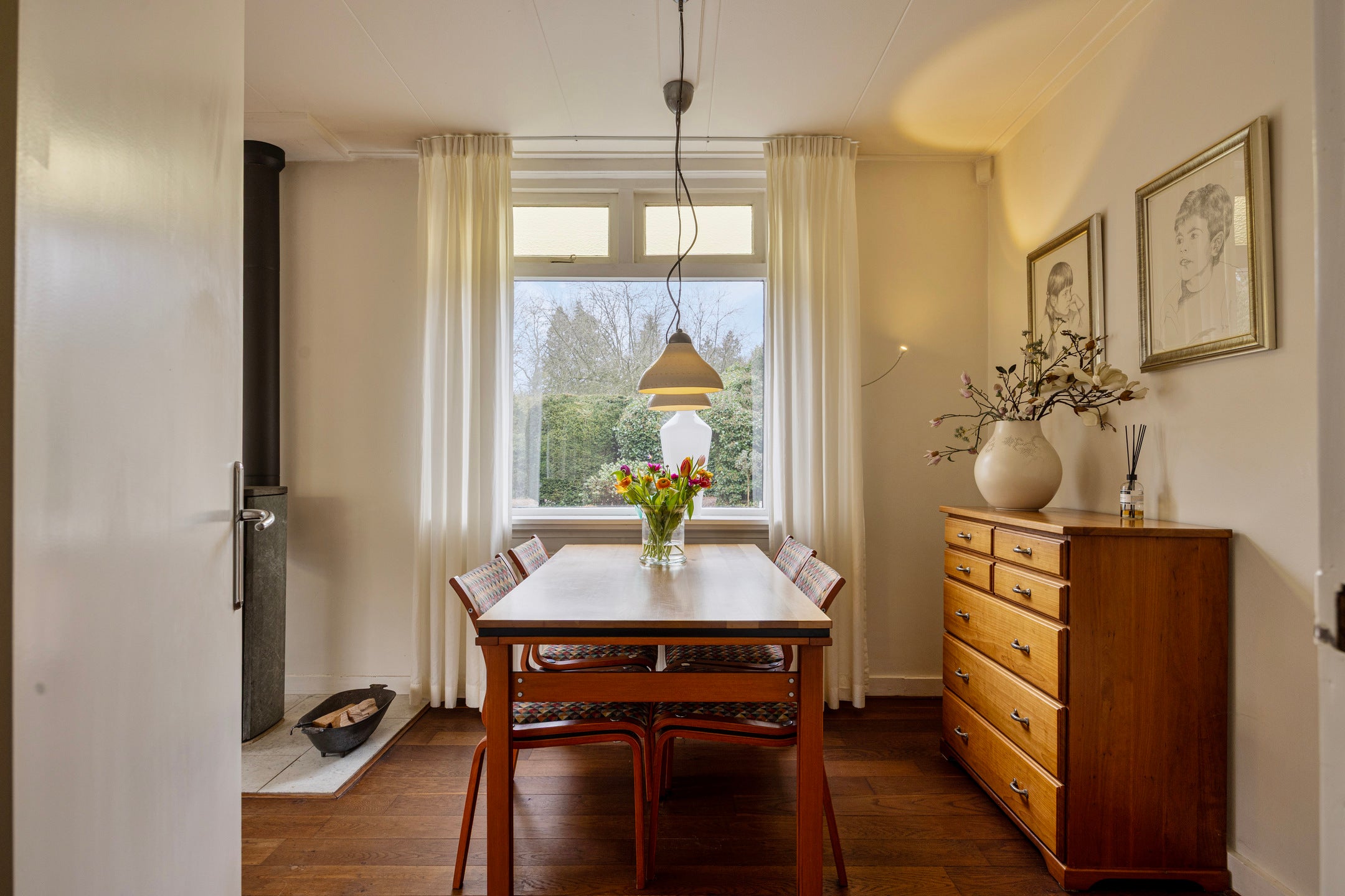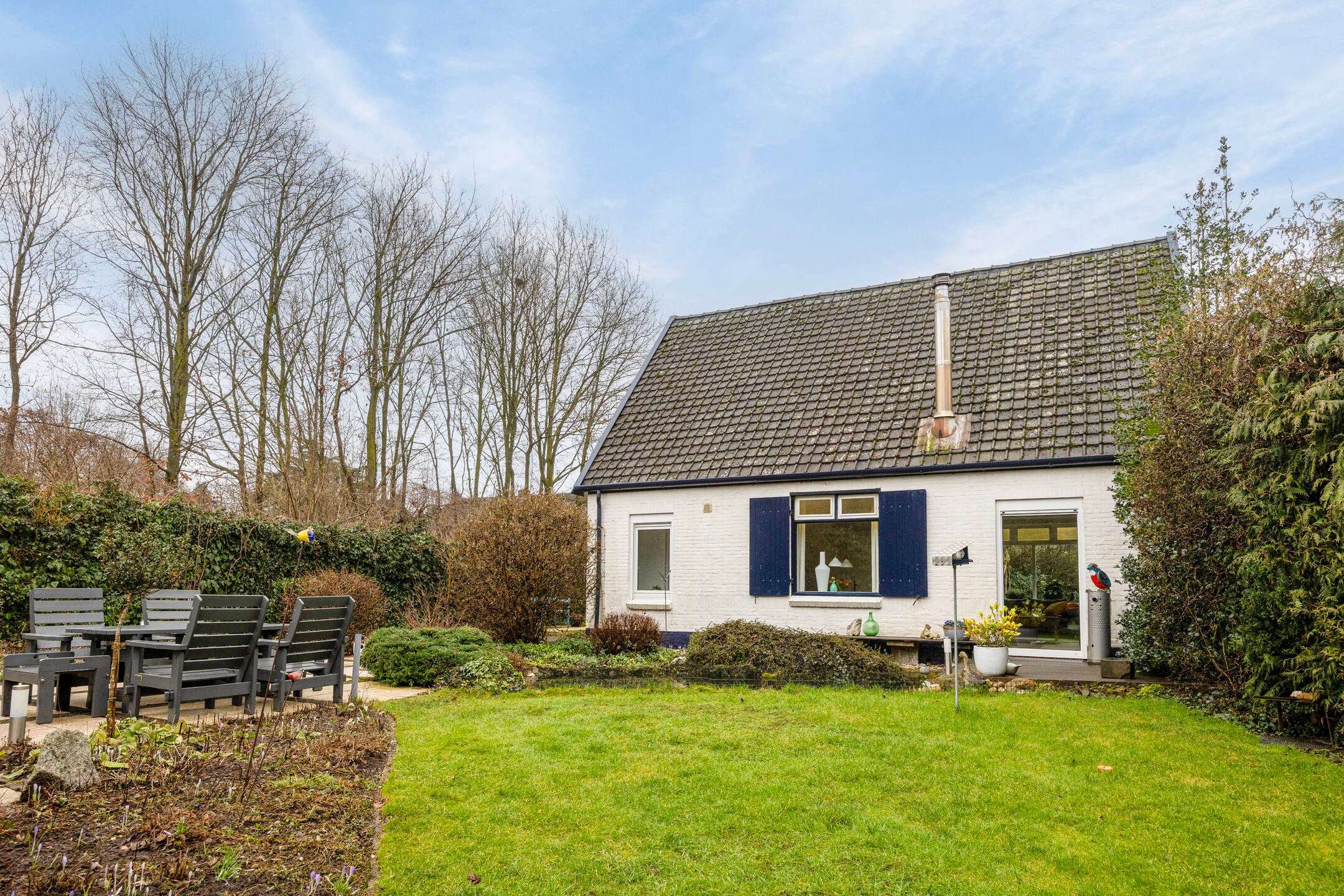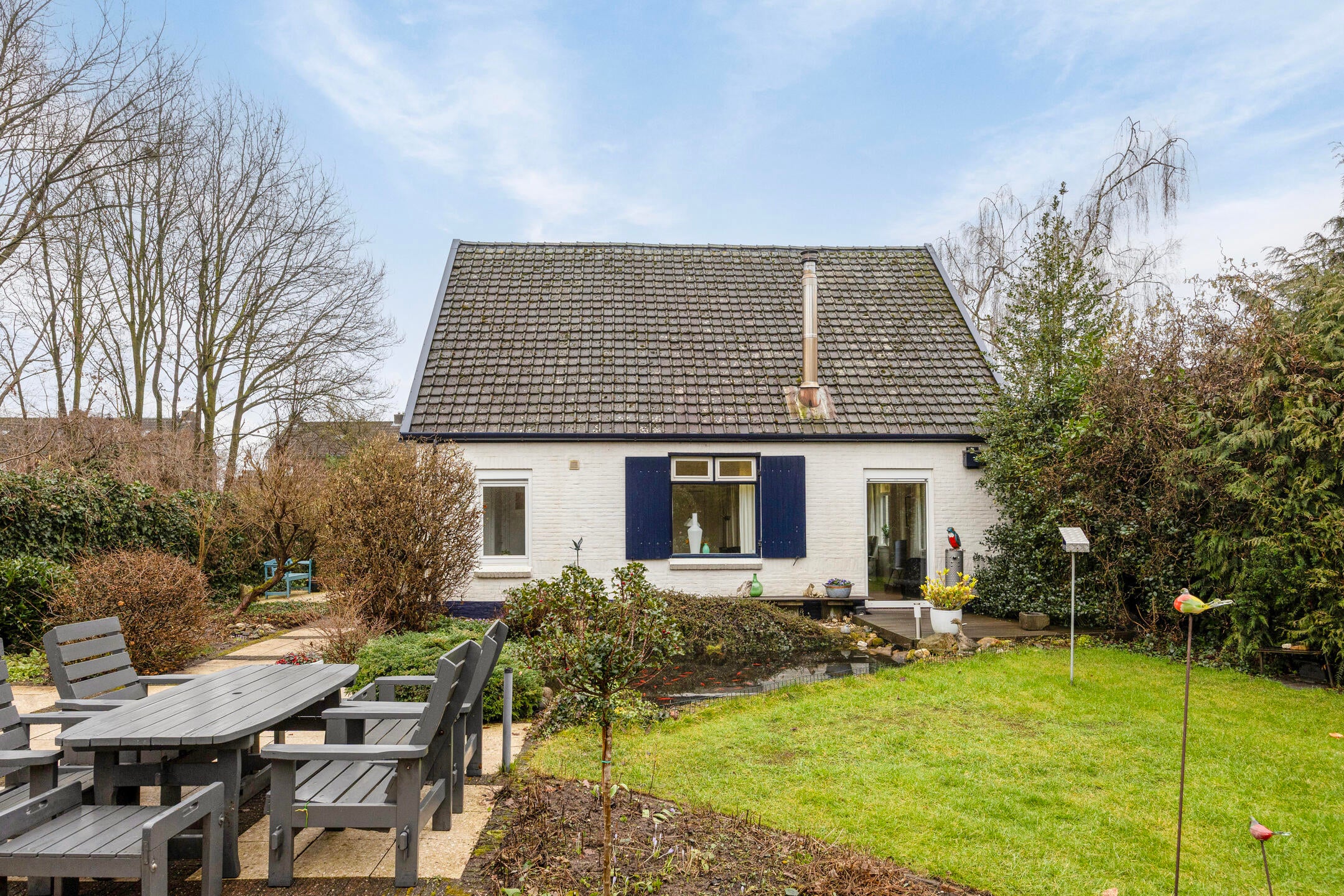 Deze sfeervolle jaren dertig woning ligt op een grandioze locatie, omgeven door rust en natuur. Met een woonoppervlakte van 102 m² op een perceel van 1270 m², biedt het huis een prachtige tuin, een dubbele garage en een berging. De begane grond heeft een lichte woonkamer met eiken parketvloer en houthaard, en een moderne keuken met inbouwapparatuur. De badkamer is bereikbaar vanuit de keuken en biedt uitzicht op de achtertuin. Op de eerste verdieping zijn drie slaapkamers, met de hoofdslaapkamer aan de achterzijde. De woning beschikt over een praktische kelder en rondom is er volop buitenruimte met een terras en vijver. Dit karaktervolle huis biedt de perfecte combinatie van comfort en buitenleven.