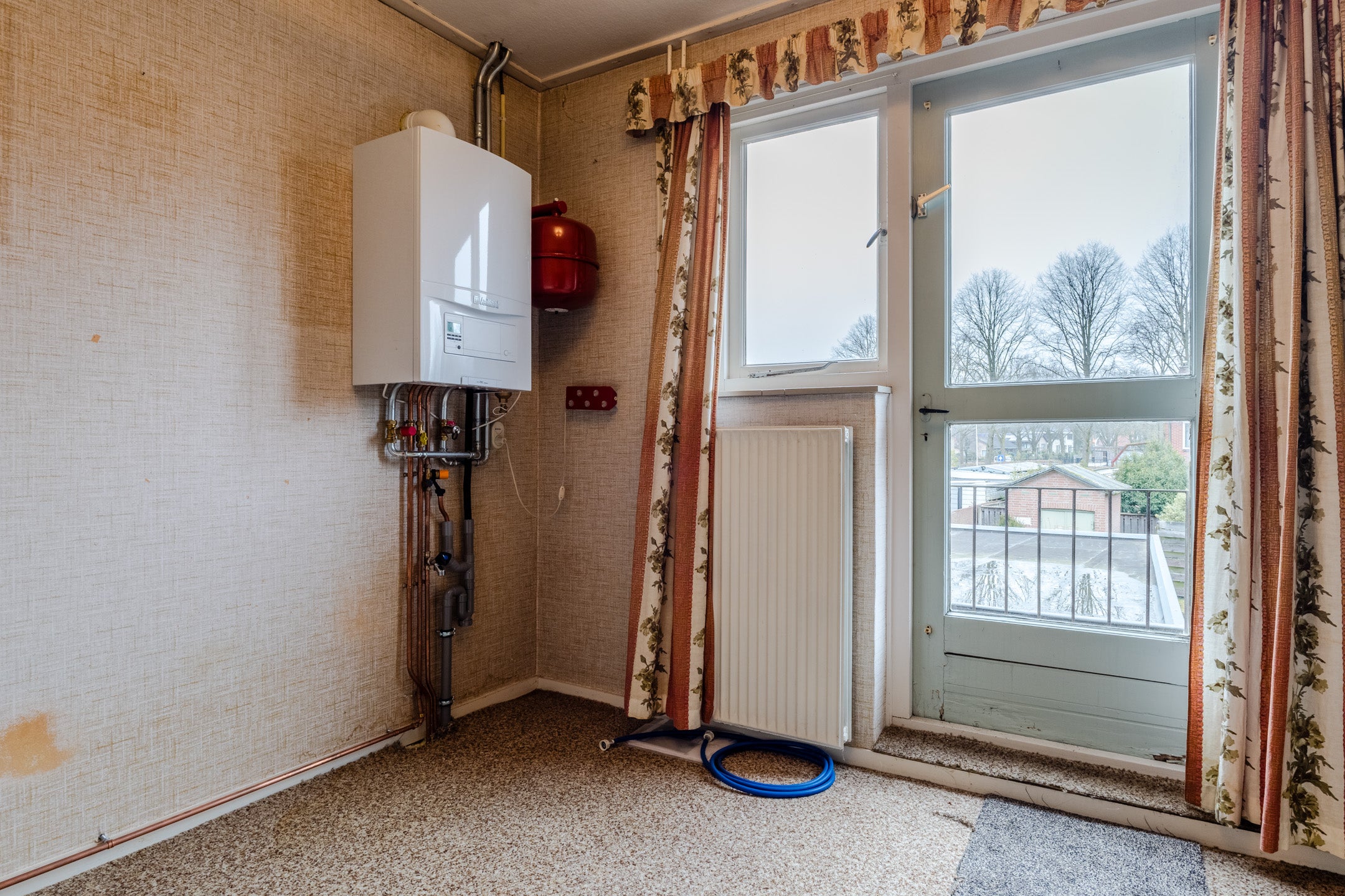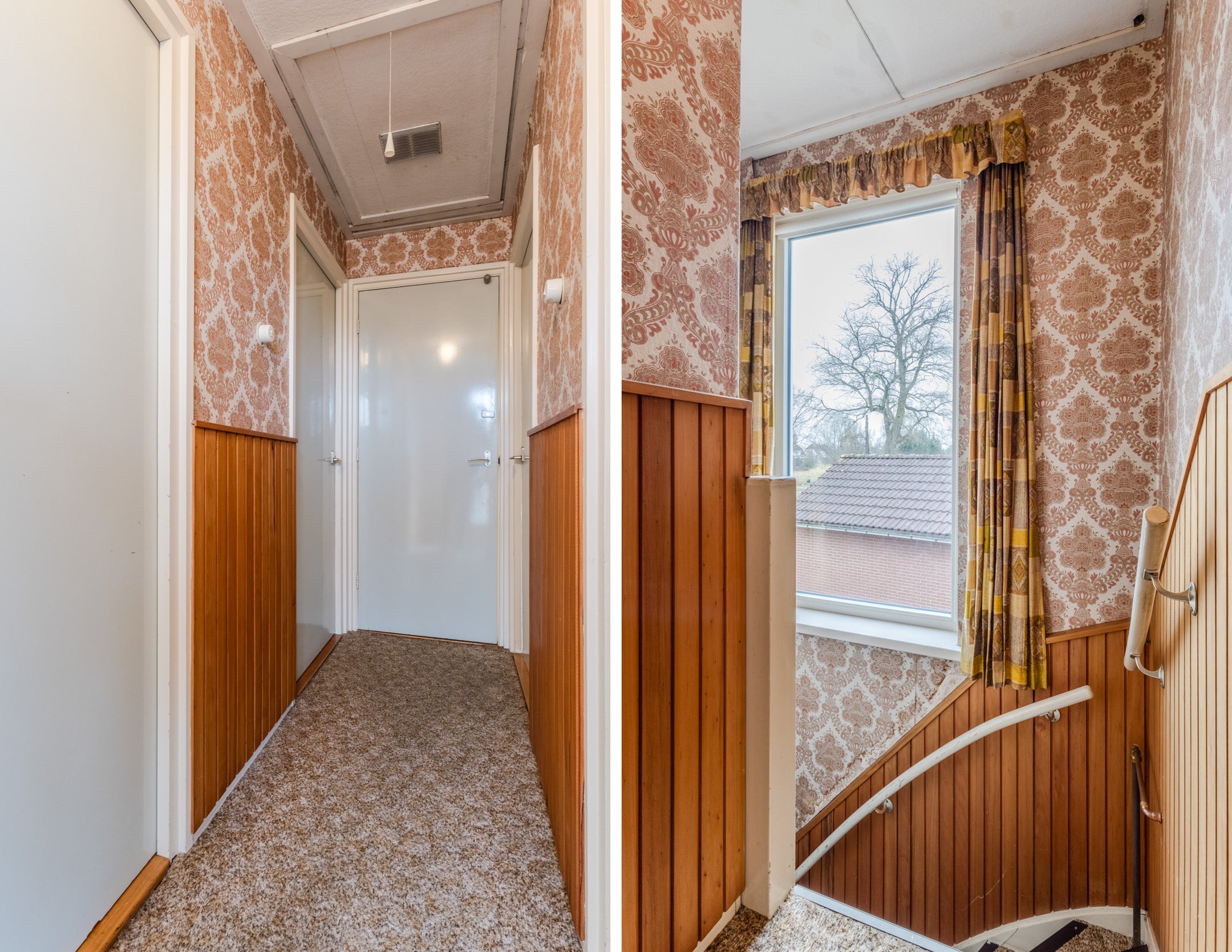De indeling is als volgt: op de begane grond vind je de entree met toilet, een eenvoudige kookkeuken, en een woonkamer met aansluiting voor een gashaard. Op de eerste verdieping zijn er drie slaapkamers met inbouwkasten en een doucheruimte. De CV-ketel is recent geplaatst en kan naar de zolder verplaatst worden.