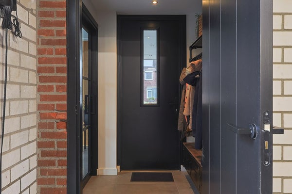 Entree/hal met meterkast, toilet en kelderkast. Glazen deur naar de royale en lichte woonkamer met open keuken en grote glazen pui met schuifdeuren naar de tuin.