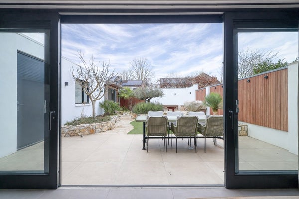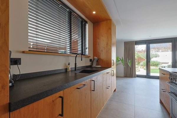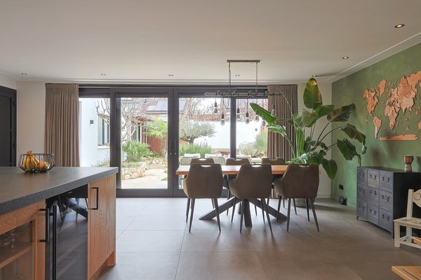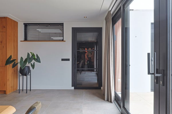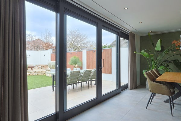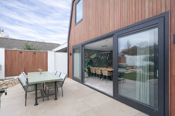 Via de brede schuifpui stap je zo het terras op van de achtertuin.