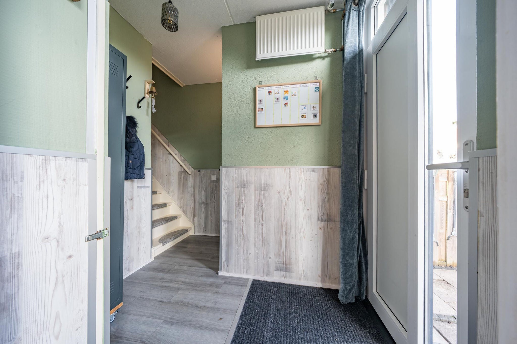 Deze goed onderhouden gezinswoning biedt een fijne woonomgeving met een voetpad en een gerenoveerde speeltuin voor de deur. De woning heeft een open achterzijde met uitzicht op een parkeerplein. Onlangs zijn de raamkozijnen vervangen door kunststof varianten met hoog rendement beglazing en de achtergevel is voorzien van dubbele tuindeuren. Binnen vind je een sfeervolle woonkamer, een praktische bijkeuken en vier slaapkamers. De tuin, gelegen op het zuidwesten, is kleurrijk aangelegd en heeft een fraaie overkapping.