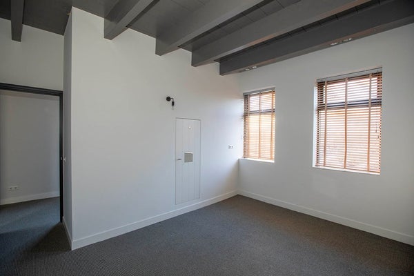 Ook hier is de vloer uitgevoerd in hout en afgewerkt met vloerbedekking, wat bijdraagt aan een comfortabele sfeer.