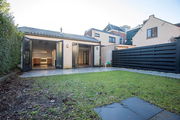 Zowel de woonkamer als de eetkeuken beschikken over openslaande deuren naar de tuin, waardoor binnen en buiten mooi in elkaar overlopen.