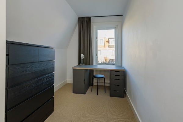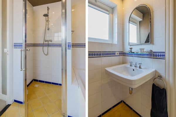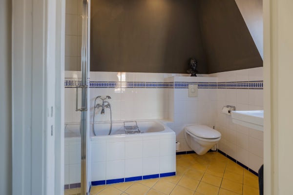 Op de eerste verdieping bevinden zich drie slaapkamers: twee ruime kamers en een derde, kleinere kamer die uitstekend dienst kan doen als kinder- of werkkamer. De royale badkamer is compleet ingericht met een ligbad, douche, toilet en een brede wastafel. Extra bergruimte is er op de ruime bergzolder, bereikbaar via een vlizotrap vanuit de slaapkamer aan de voorzijde.