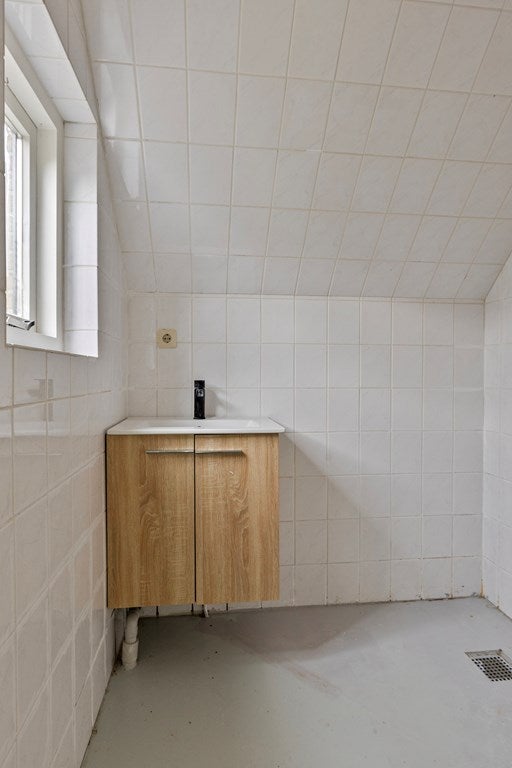 Begane grond: Entree/hal met toegang tot de doucheruimte met wastafel, witgoed aansluiting en het toilet. Verder bevinden zich op de begane grond de slaapkamer en de woonkamer met open keuken.