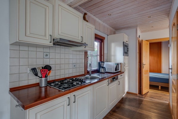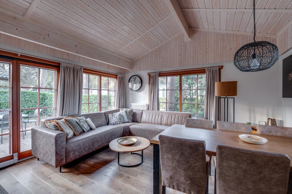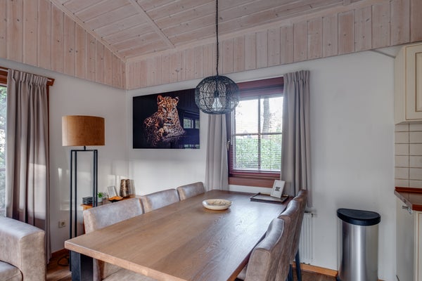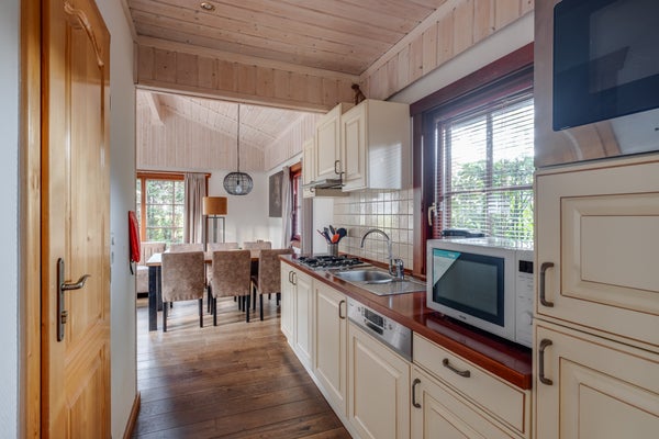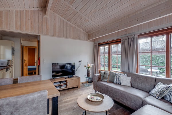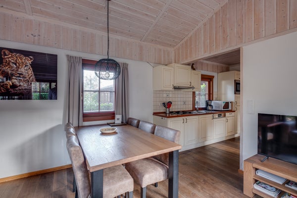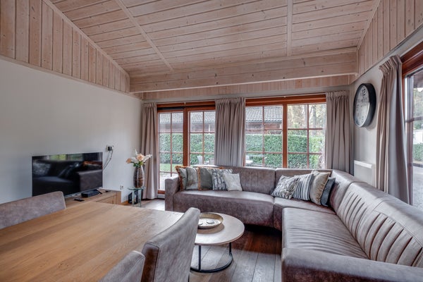 Op Resort de Achterhoek in Lochem staat dit gezellige houten chalet, gemoderniseerd in 2022. Het chalet, gelegen op een eigen grond van 198 m², heeft een tuin met terras, gazon, en een tuinberging, omgeven door een groene laurierhaag. Hier is ook een eigen parkeerplaats te vinden. Het park biedt een zwembad, restaurant, speeltuin en winkel. Voor wandelaars en fietsers is de omgeving ideaal, met het natuurgebied het Grote Veld en Lochemse Berg in de buurt. De indeling waaronder de entree, lichte woonkamer met open keuken en twee slaapkamers, maakt het geheel aantrekkelijk. De badkamer, vernieuwd in 2022, heeft een moderne afwerking. Dit chalet is perfect voor recreatief gebruik of verhuur.