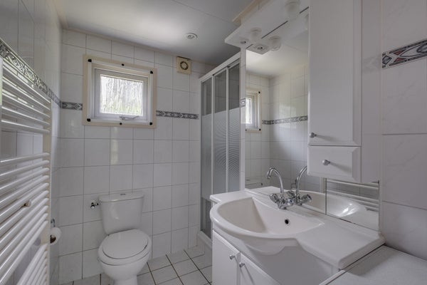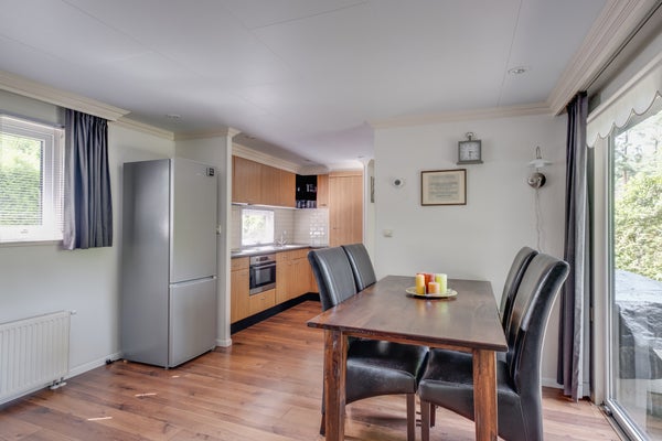 In Lochem, op Resort de Achterhoek, vindt u deze gelijkvloerse recreatiewoning met een perceel van 269 m² eigen grond. De woning biedt een praktische berging en een privacyvolle tuin met een groot terras, borders en (kunst)gazon. Hier kunt u heerlijk recreëren. Het park grenst aan het natuurgebied 't Groote Veld, ideaal voor wandel- en fietsliefhebbers, en ligt nabij voorzieningen zoals een zwembad en golfbaan. De indeling omvat een entree, een volledig betegelde badkamer met douche, en twee slaapkamers. De open keuken is voorzien van inbouwapparatuur. De woonkamer heeft een schuifpui en grote raampartijen voor lichtinval. Met een woonoppervlakte van 47 m² en goed onderhouden kunststof kozijnen is het een fijne plek voor recreatief gebruik.
