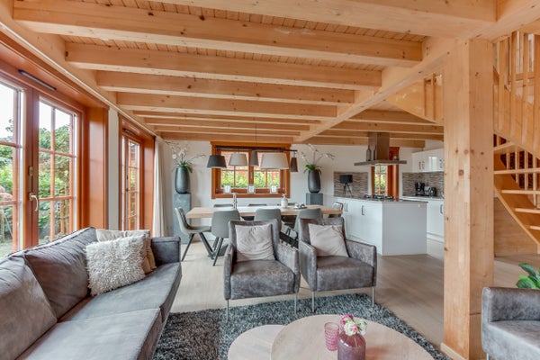Heerlijk recreëren in deze luxe 10-persoons vakantievilla aan het water! Gelegen op een perceel van 316 m², biedt deze moderne houten vakantiewoning met een woonoppervlakte van 104 m² ruimte voor het hele gezin. Op de begane grond vind je een open keuken, voorzien van inbouwapparatuur, en een woonkamer met uitzicht op de zwem-/visvijver. Drie openslaande tuindeuren geven toegang tot het ruime terras. De begane grond beschikt ook over een slaapkamer en een moderne badkamer met sauna. Boven zijn er vier slaapkamers en een tweede badkamer. De villa ligt in een bosrijke omgeving nabij Lochem en Zutphen, ideaal voor ontspanning en recreatie. Geniet van de faciliteiten van het Recreatiepark Resort de Achterhoek, en ontdek de natuur rondom.