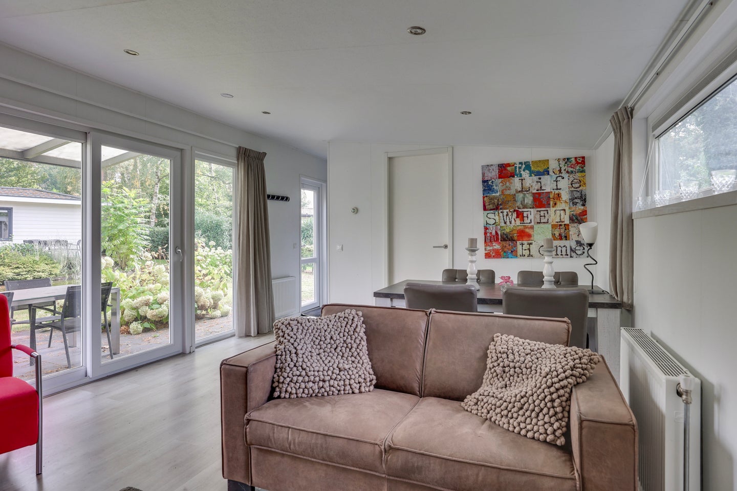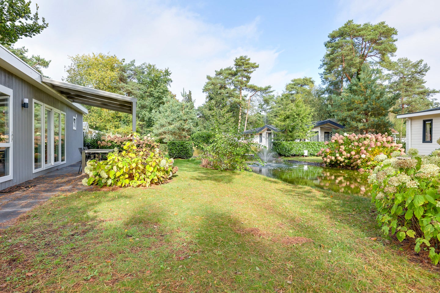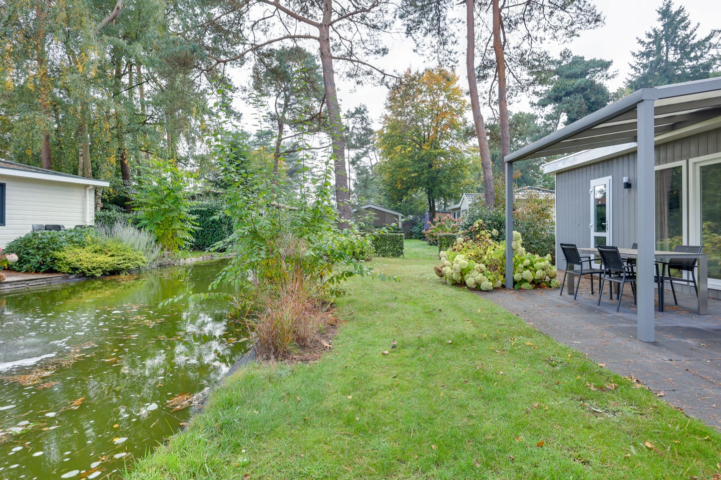 Deze moderne vrijstaande recreatiewoning, gelegen tussen Lochem en Zutphen, biedt plek aan 4 personen en ligt aan een sfeervolle vijver. Met een perceel van 292 m² en een woonoppervlak van ca. 42 m² is er voldoende ruimte voor ontspanning. De woning heeft een lichte woonkamer met grote ramen en openslaande deuren naar de veranda, waar u het uitzicht op het water kunt genieten. De keuken is voorzien van inbouwapparatuur, terwijl de badkamer beschikt over een ruime douche en toilet. Er zijn twee slaapkamers, waarvan één met een vaste kast. Gebouwd in 2016, is dit een recreatiewoning die niet permanent bewoond mag worden. Het park biedt toegang tot diverse faciliteiten en u kunt genieten van de natuur in de omgeving.