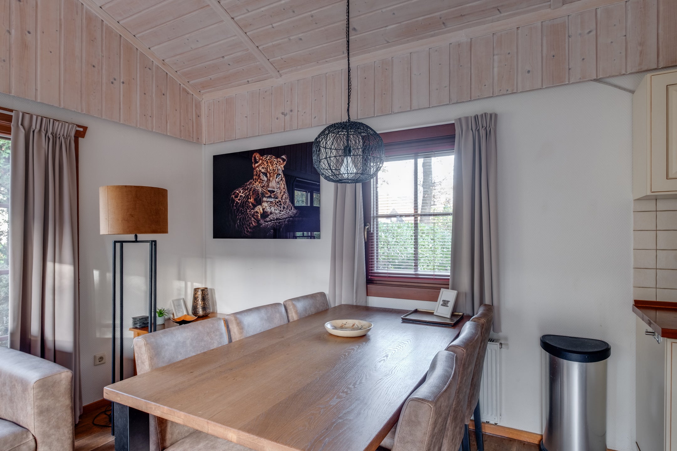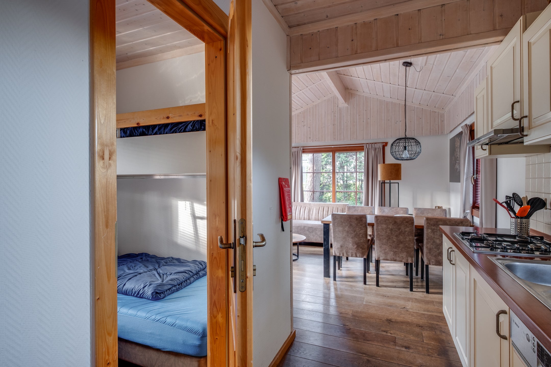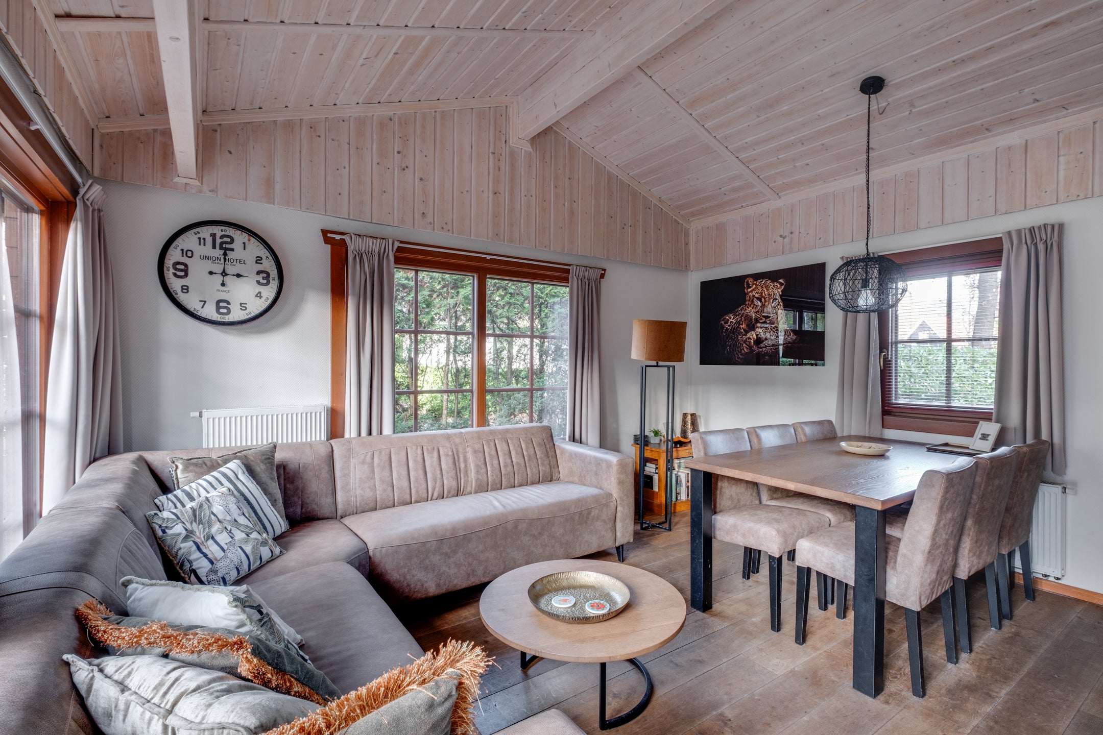 Deze in 2022 gemoderniseerde houten chalet op Resort de Achterhoek in Lochem biedt een gezellige plek voor recreatie. Gelegen op een eigen perceel van 198 m², heeft het een tuin met een terras en een gazon, omgeven door een laurierhaag. De chalet beschikt over eigen parkeerplaats en een externe berging. Binnen vind je een lichte woonkamer met hoge plafonds en toegang tot het terras, een praktische open keuken met inbouwapparatuur, twee slaapkamers en een vernieuwde badkamer. Het park biedt faciliteiten zoals een zwembad, restaurant en speeltuin en ligt nabij wandel- en fietsmogelijkheden. De chalet is ideaal voor een vakantieplek of als investering voor verhuur.