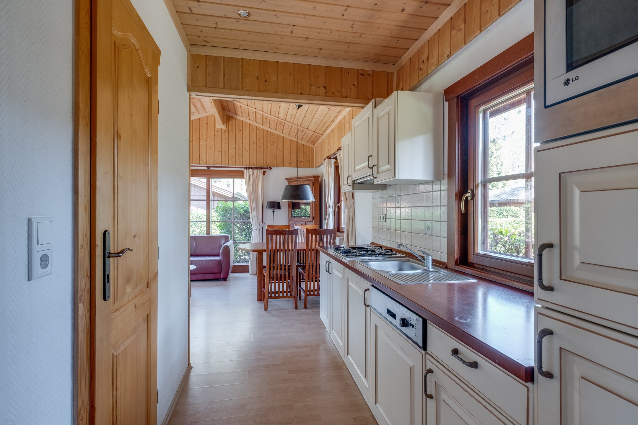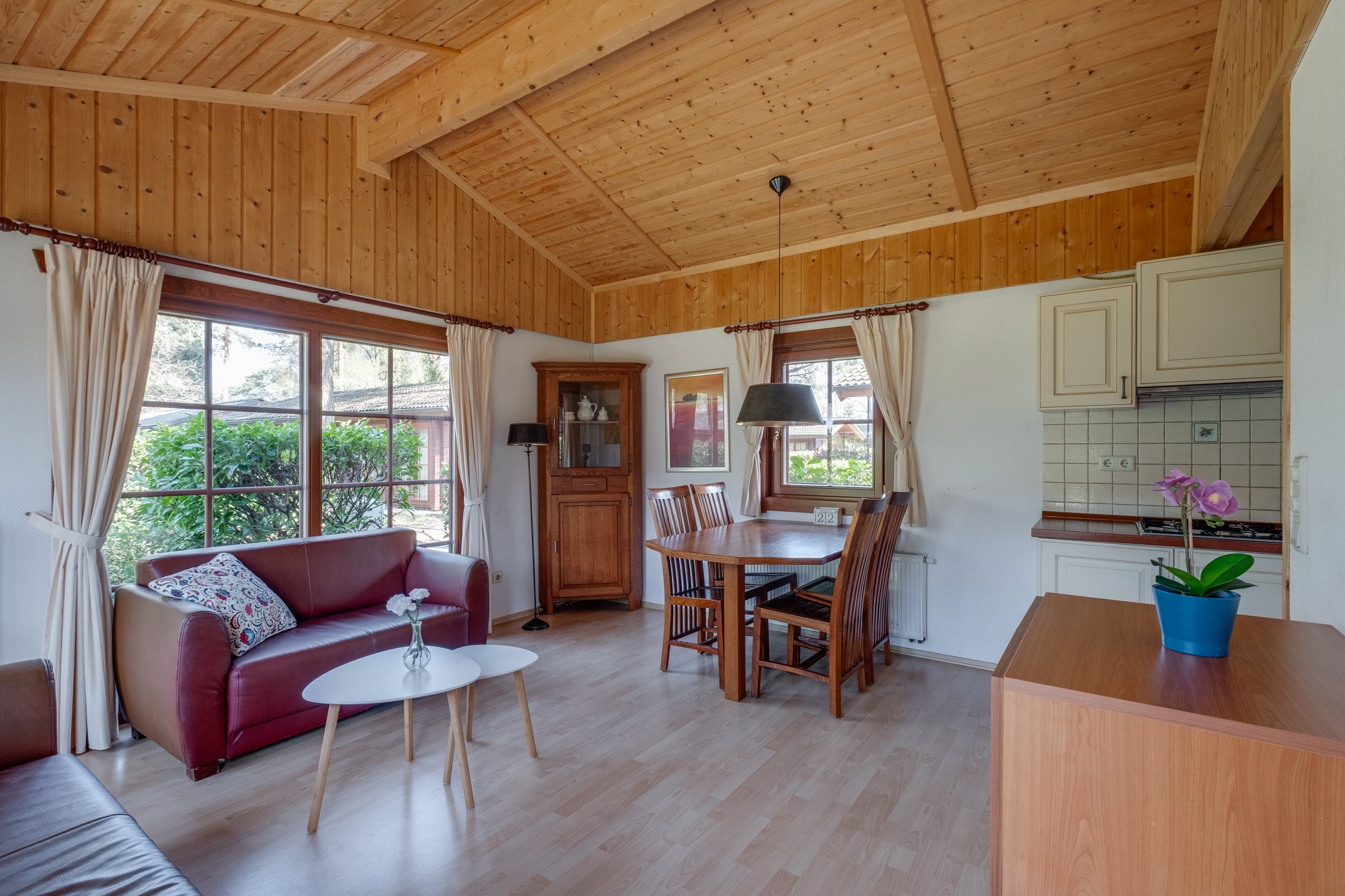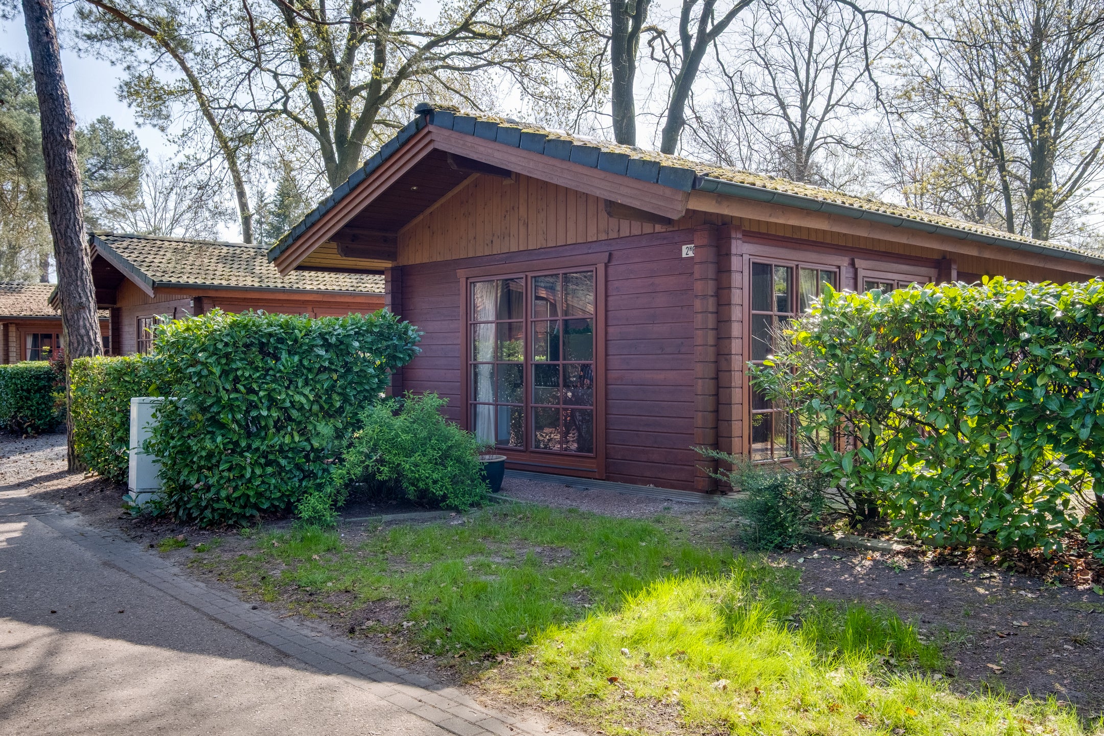 In het bosrijke vakantiepark Resort de Achterhoek in Lochem staat een sfeervolle houten chalet. Deze chalet, gebouwd in 2005, ligt op een eigen perceel van 218 m² en heeft een woonoppervlakte van 46 m². Bij binnenkomst ervaar je de warme sfeer, met een open keuken inclusief moderne apparatuur, een gezellige woonkamer met toegang tot het terras en twee slaapkamers, waarvan de master met ingebouwde kasten is. De badkamer is praktisch ingericht met een wastafel, douche en wasmachineaansluiting. De tuin rondom is voorzien van een bosgazon en biedt privacy. Het park biedt faciliteiten zoals een zwembad en speeltuin, en in de directe omgeving zijn wandel- en fietsmogelijkheden. Dit is een perfecte recreatiewoning, ideaal voor jouw eigen vakantieplek.