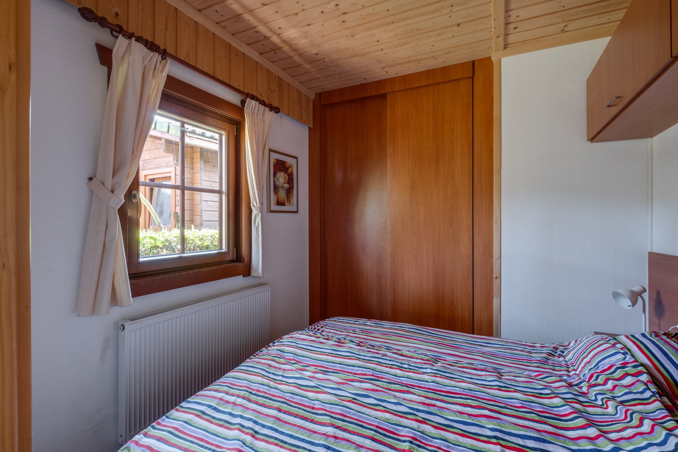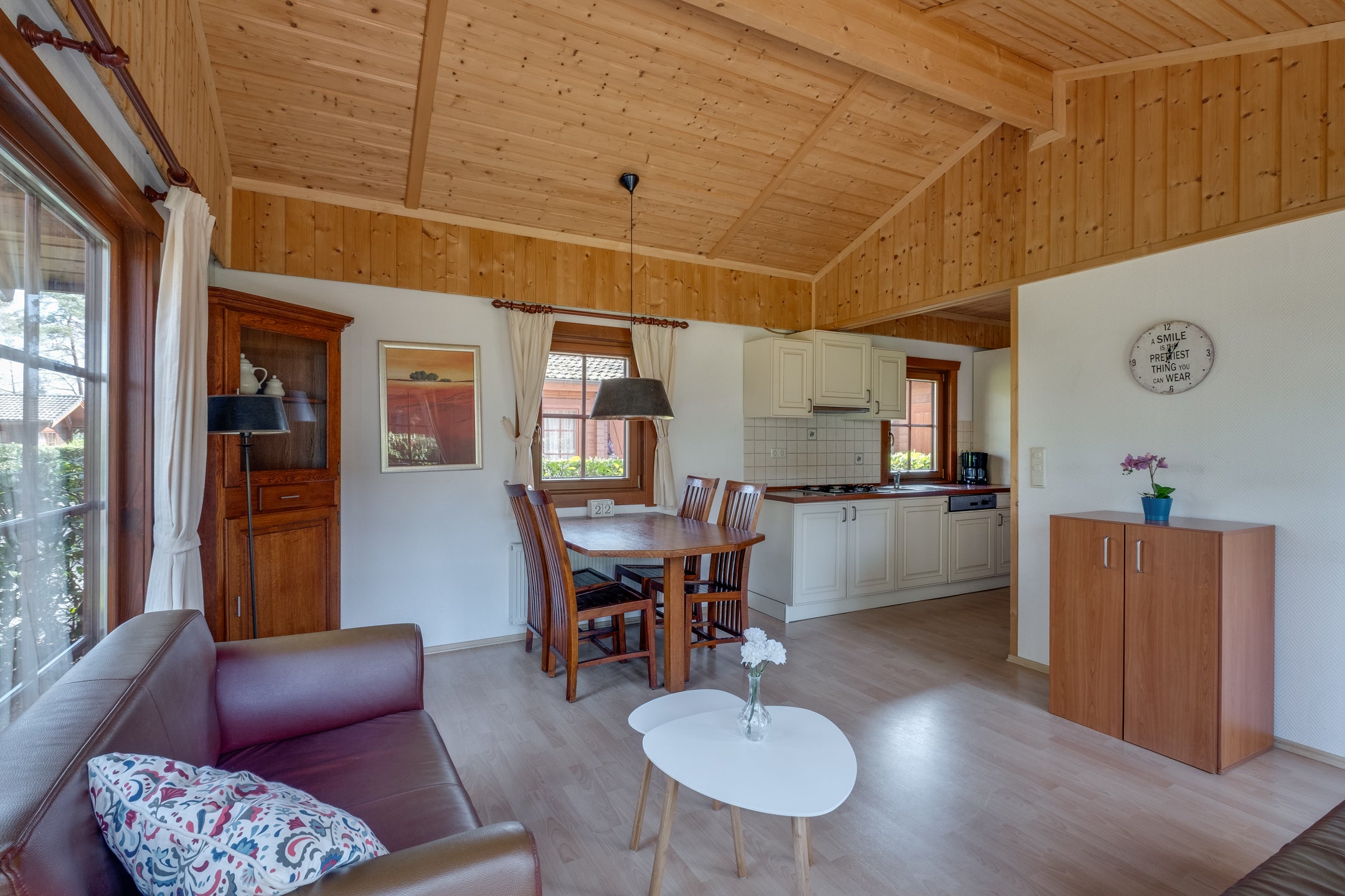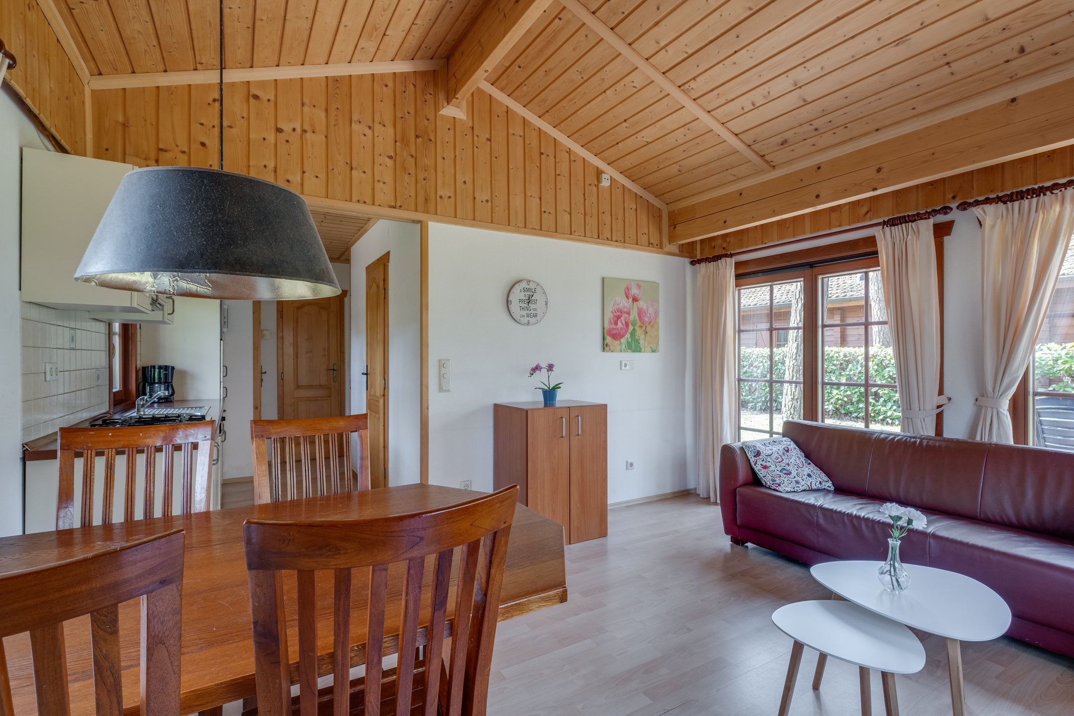 In het bosrijke vakantiepark Resort de Achterhoek in Lochem staat een sfeervolle houten chalet. Deze chalet, gebouwd in 2005, ligt op een eigen perceel van 218 m² en heeft een woonoppervlakte van 46 m². Bij binnenkomst ervaar je de warme sfeer, met een open keuken inclusief moderne apparatuur, een gezellige woonkamer met toegang tot het terras en twee slaapkamers, waarvan de master met ingebouwde kasten is. De badkamer is praktisch ingericht met een wastafel, douche en wasmachineaansluiting. De tuin rondom is voorzien van een bosgazon en biedt privacy. Het park biedt faciliteiten zoals een zwembad en speeltuin, en in de directe omgeving zijn wandel- en fietsmogelijkheden. Dit is een perfecte recreatiewoning, ideaal voor jouw eigen vakantieplek.