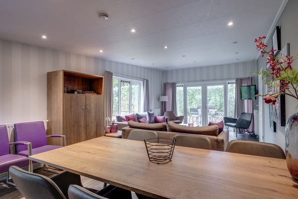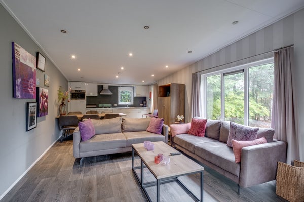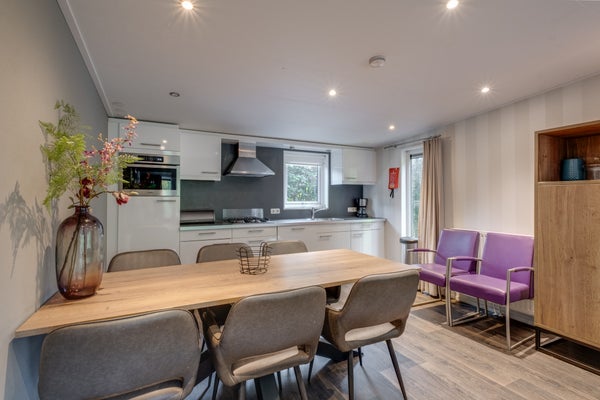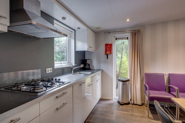 Deze luxe L-vormige vakantiewoning voor zes personen ligt op een rustige locatie in een bosrijk park op 324 m² eigen grond. De woning biedt veel privacy met een tuin op het zuiden en beschikt over een overdekte entree, een T-vormige hal, en drie slaapkamers, waarvan de hoofdslaapkamer openslaande deuren naar de tuin heeft. De woonkamer baadt in natuurlijk licht dankzij grote raampartijen. Er is een moderne keuken met inbouwapparatuur en een badkamer met inloopdouche. Het park biedt voorzieningen zoals een recreatievijver, restaurants, en een zwembad. De woning is volledig geïsoleerd en is gemeubileerd, met een woonoppervlakte van 69 m² en een inhoud van 258 m³.