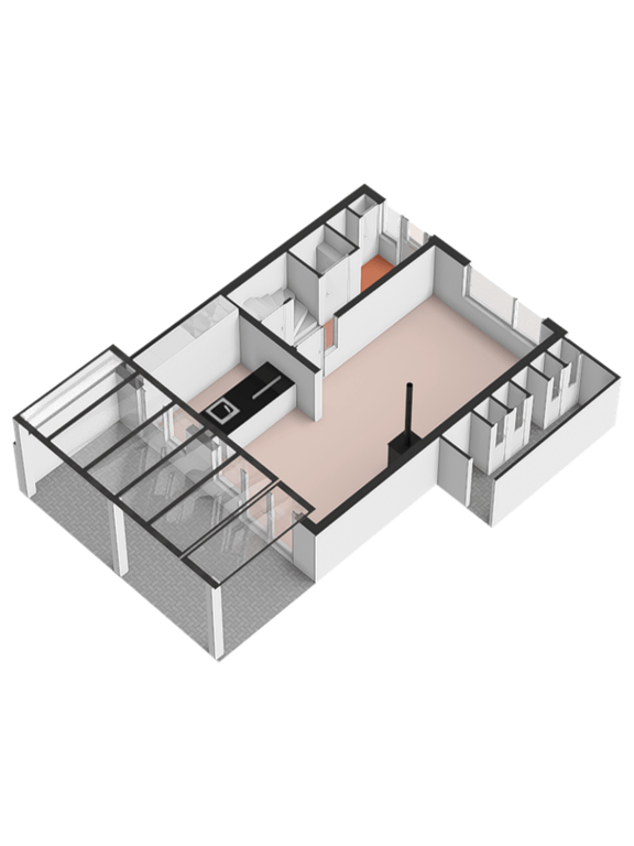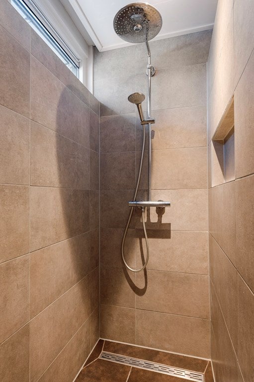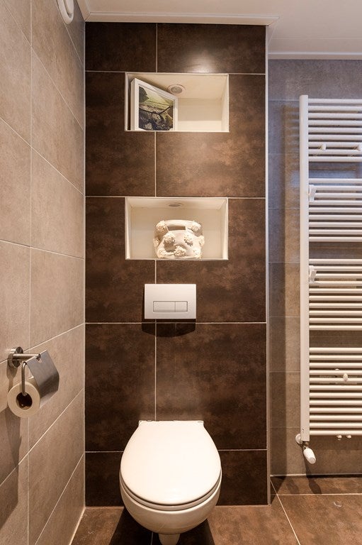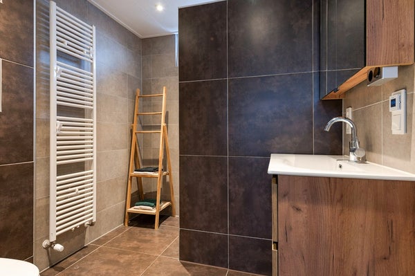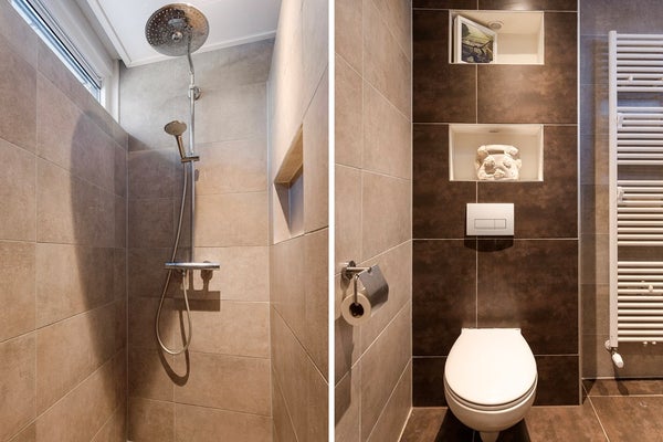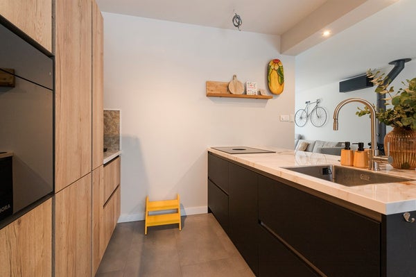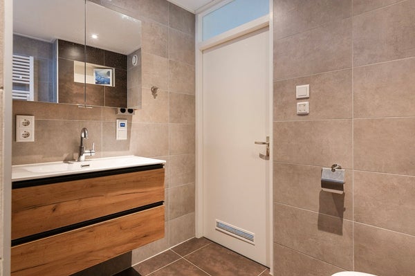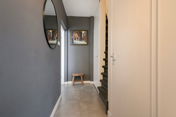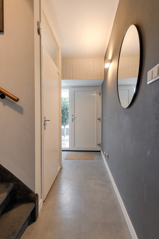 De gehele benedenverdieping is voorzien van een strakke, neutrale tegelvloer en vloerverwarming.