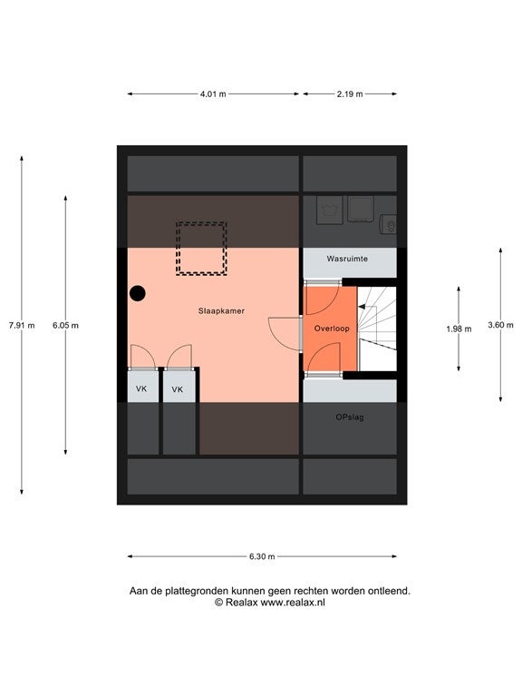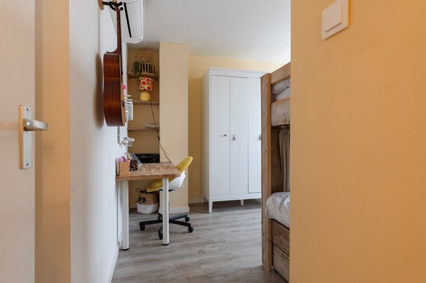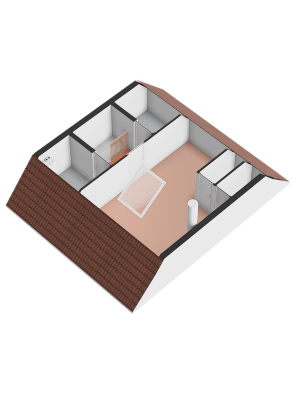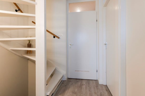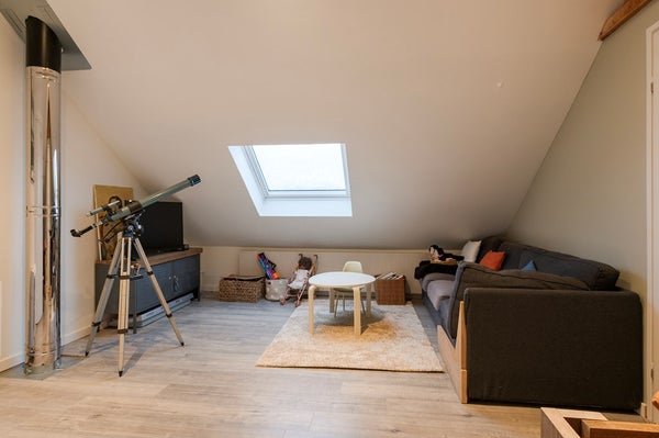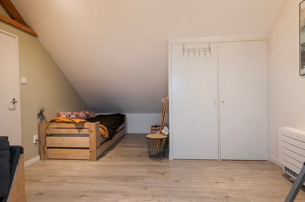 Tweede verdieping: Een vaste trap leidt naar de tweede verdieping met de vierde slaapkamer. Ook bevinden zich hier een kleine opslagruimte en een ruimte voor wasmachine- en cv-opstelling.
