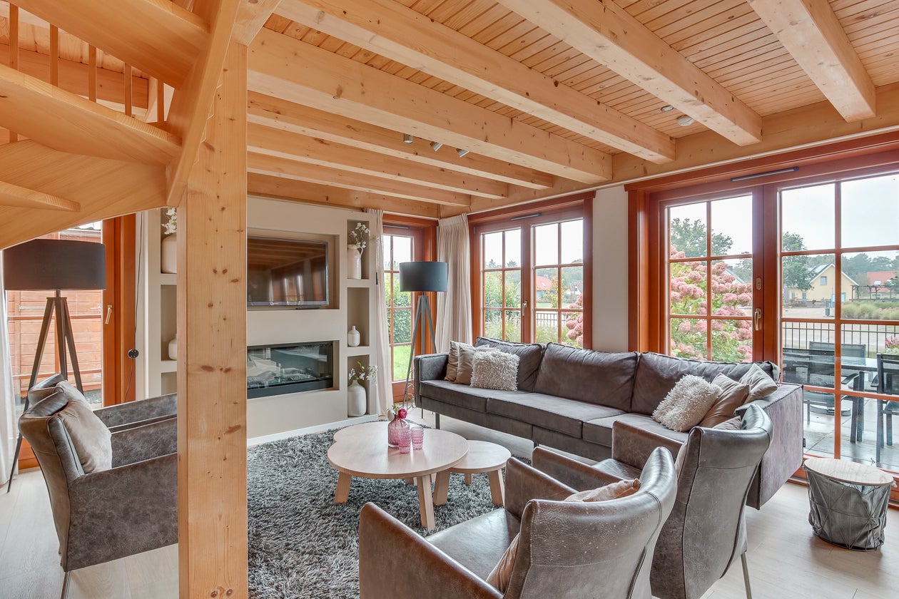 Geniet van een luxe 10-persoons vakantievilla aan het water, gelegen op 316 m² eigen grond. Deze moderne houten woning heeft een lichte en frisse uitstraling, met een open keuken en ruime woonkamer die uitzicht biedt op het water. Via openslaande tuindeuren heeft u toegang tot een groot terras. Op de begane grond vindt u een slaapkamer en een moderne badkamer met sauna. De verdieping beschikt over drie slaapkamers, waarvan één met een wastafel, en een aanvullende badkamer met ligbad. De villa bevat ook een vrijstaande berging en is volledig geïsoleerd met energielabel A. Gelegen in een bosrijke omgeving, nabij Lochem en Zutphen, komt u hier helemaal tot rust of geniet u van recreatieve activiteiten op het park.