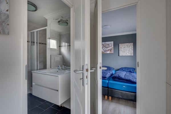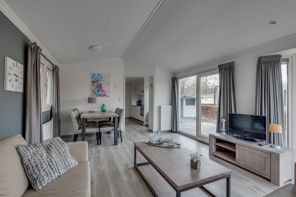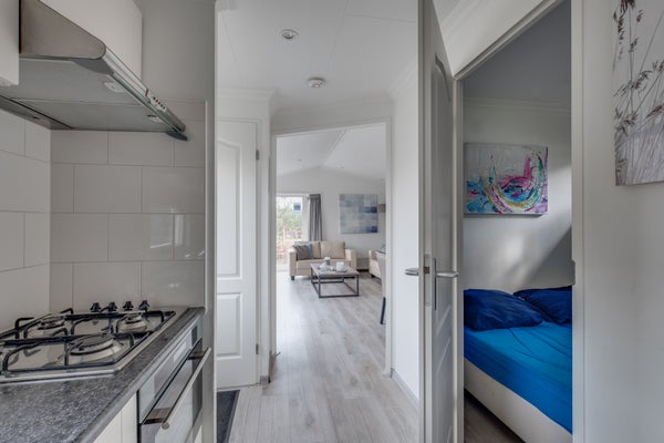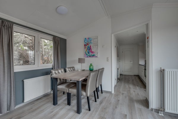 Gelegen in een bosrijk recreatiepark, vindt u dit onderhoudsarme chalet voor vier personen met uitzicht op een recreatievijver, op een perceel van 258 m² in zuidelijke richting. Dit chalet heeft een lichte afwerking, laminaatvloeren en inbouwspots in alle kamers. Resort de Achterhoek biedt faciliteiten zoals een zwem-/visvijver en een supermarkt, terwijl het ook een rustige omgeving biedt voor wie ontspanning zoekt.
