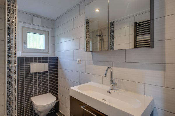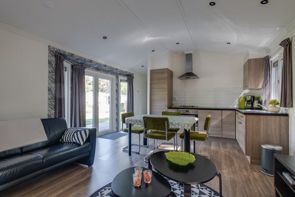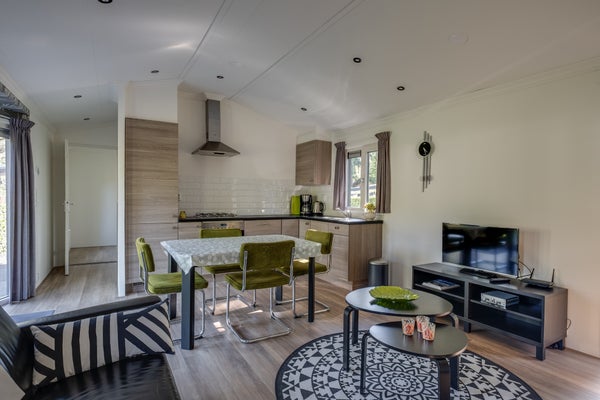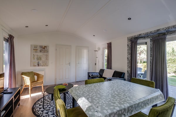 De moderne open keuken is voorzien van een vaatwasser, combimagnetron en een 4-pits gasfornuis in houtlook. De stijlvolle badkamer heeft een inloopdouche en wastafelmeubel. Geniet van uw eigen tuin aan het water en parkeer op uw eigen terrein. In de omgeving vindt u recreatieve voorzieningen zoals een zwembad en wandel- en fietspaden. Dit chalet is gebouwd in 2014 en verhuur is mogelijk in overleg, maar permanente bewoning is niet toegestaan.