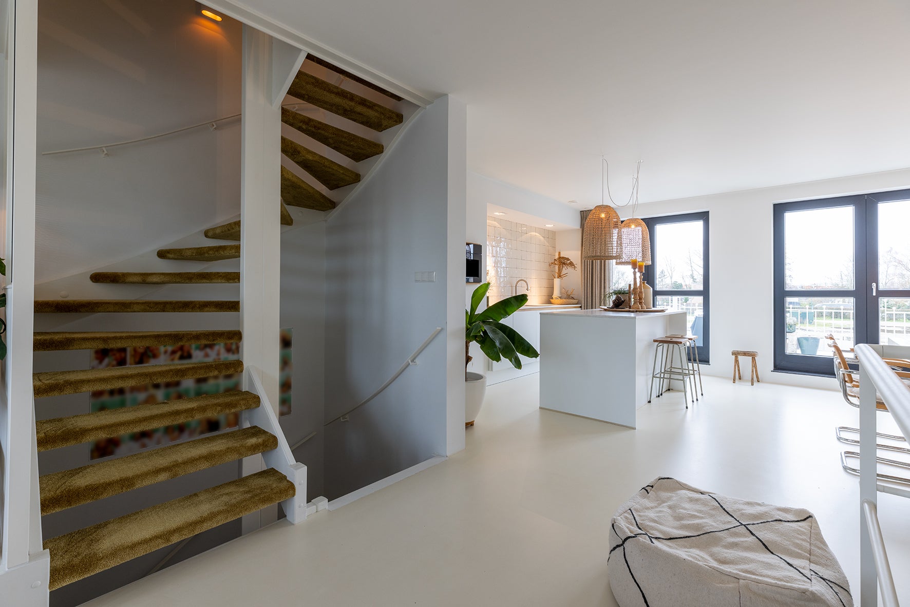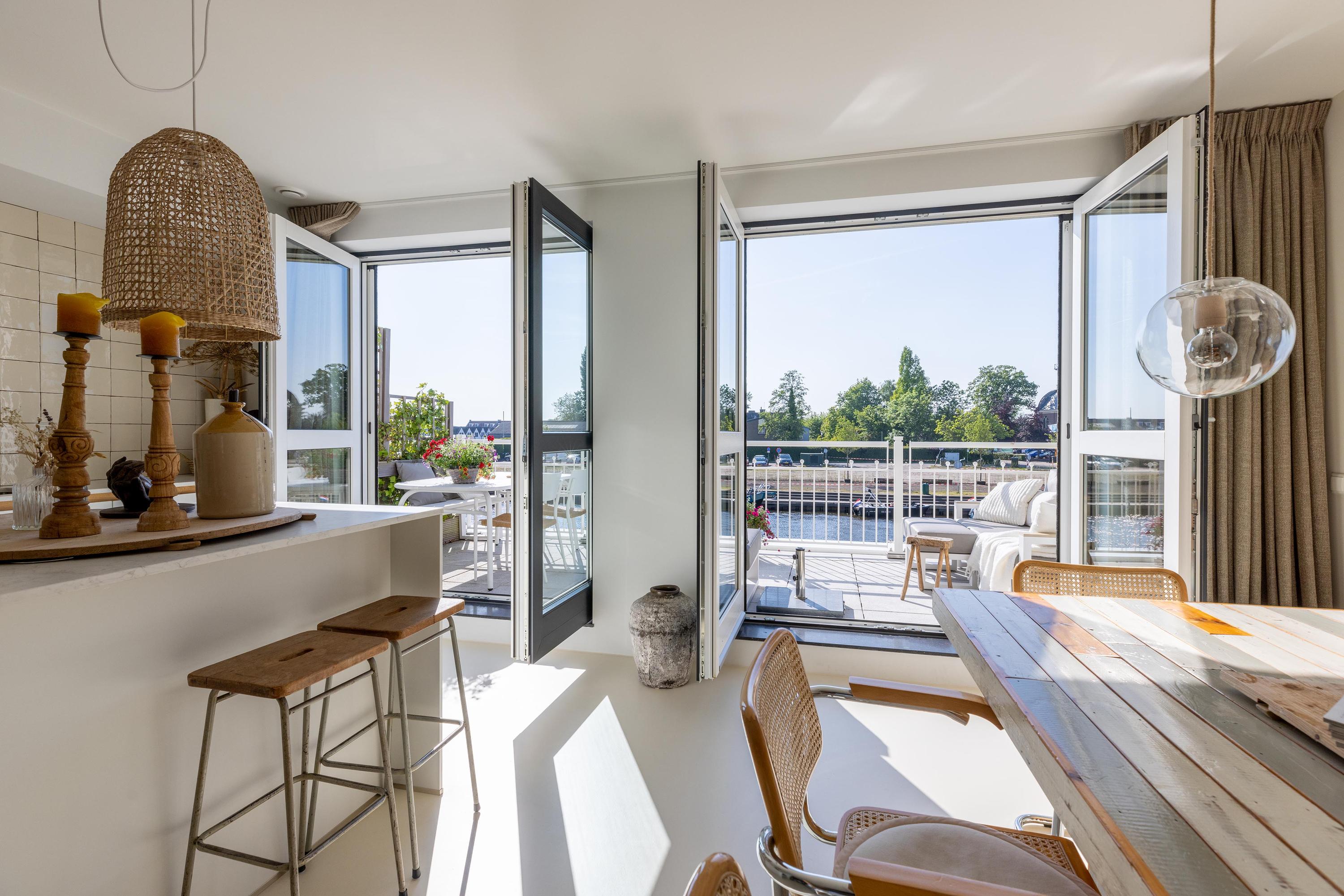 Deze luxe woning van 284 m² ligt aan de Porseleinhaven in Oud-Loosdrecht en biedt een uniek uitzicht op de Loosdrechtse Plassen. Met zes slaapkamers, twee badkamers, twee keukens en een mogelijkheid voor een gescheiden kantoor- of praktijkruimte, is dit ideaal voor zelfstandigen en expats. De verschillende niveaus en praktische indeling maken het ook geschikt voor samengestelde gezinnen. De begane grond bevat een grote open keuken met een houtkachel, en een zonnig terras aan de waterkant. De eerste verdieping heeft een lichte woonkamer met toegang tot een balkon. Twee ruime slaapkamers en een moderne badkamer bevinden zich op de tweede verdieping. De derde verdieping herbergt nog eens twee slaapkamers met een extra badkamer. Voorzien van zonnepanelen, vloerverwarming en een eigen tuin, ligt deze woning dicht bij winkels en heeft een uitstekende verbinding met Amsterdam en Utrecht.