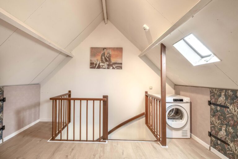 De zonnige achtertuin op het westen biedt privacy en uitzicht op een park. Op de eerste verdieping zijn drie slaapkamers en een comfortabele badkamer. De zolder met vaste trap is ideaal voor extra kamers of opslag. Met een eigen garage en voldoende parkeerfaciliteiten is dit een perfect gezinshuis.