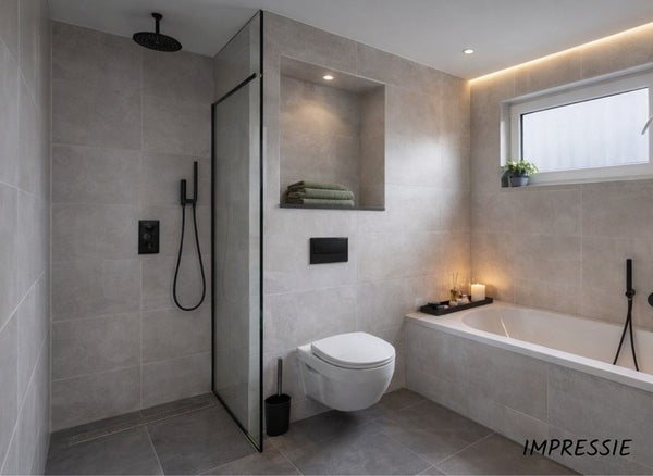 Via de vaste trap bereik je de overloop van de eerste verdieping, die toegang biedt tot drie slaapkamers en de badkamer. De royale ouderslaapkamer, gelegen aan de achterzijde van de woning, strekt zich over de volledige breedte van het huis en biedt daardoor veel ruimte. De andere twee slaapkamers bevinden zich aan de voorzijde, waarvan één is uitgerust met een balkon. De badkamer met vloerverwarming is compleet ingericht met een douche, ligbad, toilet en een wastafelmeubel.