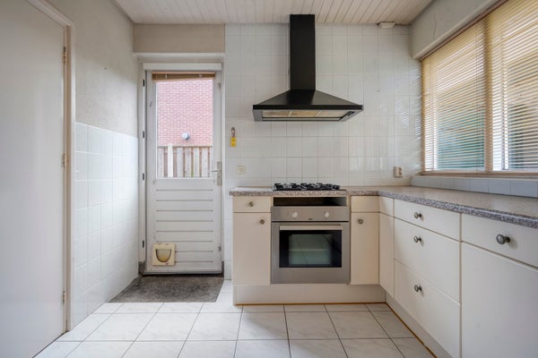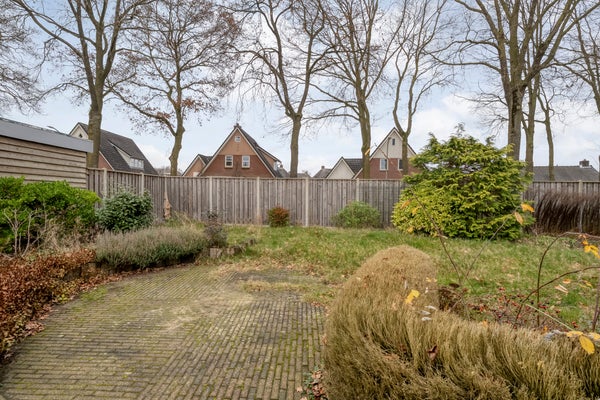 De achtertuin is groen aangelegd met meerdere terrassen, en er is een verbouwde garage die nu als atelier dient. Parkeren kan op eigen terrein. Dit huis biedt een aantrekkelijke combinatie van ruimte en mogelijkheden.