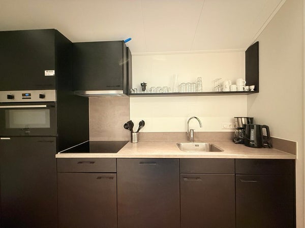 De keuken is modern en slim ingericht, zodat koken hier vanzelf prettig blijft, of u nu snel iets klaarmaakt voor onderweg of juist uitgebreid de tijd neemt. De keuken is voorzien van een inductiekookplaat, vaatwasser, koelkast, combimagnetron en afzuigkap, waardoor u alles bij de hand heeft voor gemak en comfort.