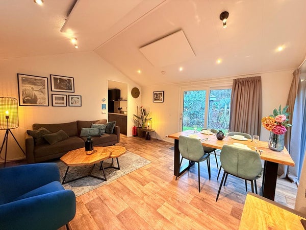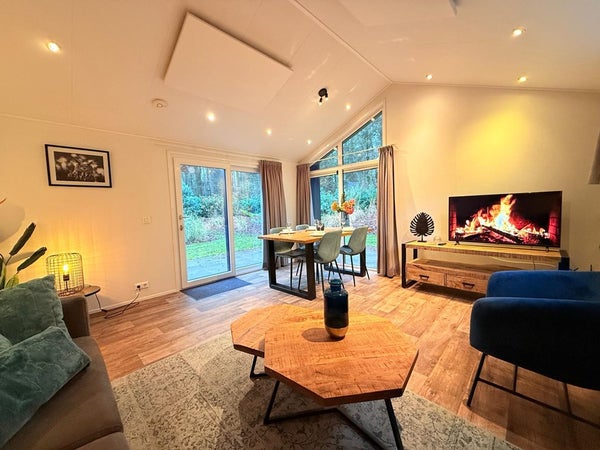 De woonkamer is licht, warm en uitnodigend, met grote ramen die het buitengevoel naar binnen halen en een open sfeer creëren waar u moeiteloos ontspant na een dag in de natuur. Op de comfortabele bank komt u samen voor een fijne filmavond, een goed gesprek of juist een rustig moment met een kop koffie, terwijl de LED-TV en de verzorgde inrichting het geheel compleet maken.