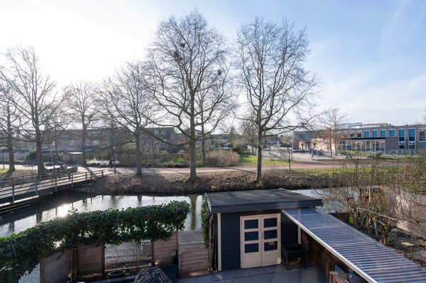 Deze goed onderhouden en ruime hoekwoning beschikt over een inpandige berging, twee houten schuren en een zonnige tuin op het zuidwesten, direct aan een brede singel. De woning is met 6 meter breed en drie woonlagen het grootste type in de wijk Kamelenspoor. Gelegen aan een rustig woonerf, tegenover sportcomplex BisonSport, zijn diverse voorzieningen zoals basisscholen, winkelcentrum Bisonspoor en het NS-station op loopafstand. De indeling omvat op de begane grond een ruime woonkamer, een open keuken, modern toilet en berging. De eerste verdieping heeft drie slaapkamers en een luxe badkamer. De tweede verdieping biedt een grote zolderkamer. Met een perceeloppervlak van 172 m² en woonoppervlak van 144 m², is deze woning goed geïsoleerd en heeft een energielabel B.
